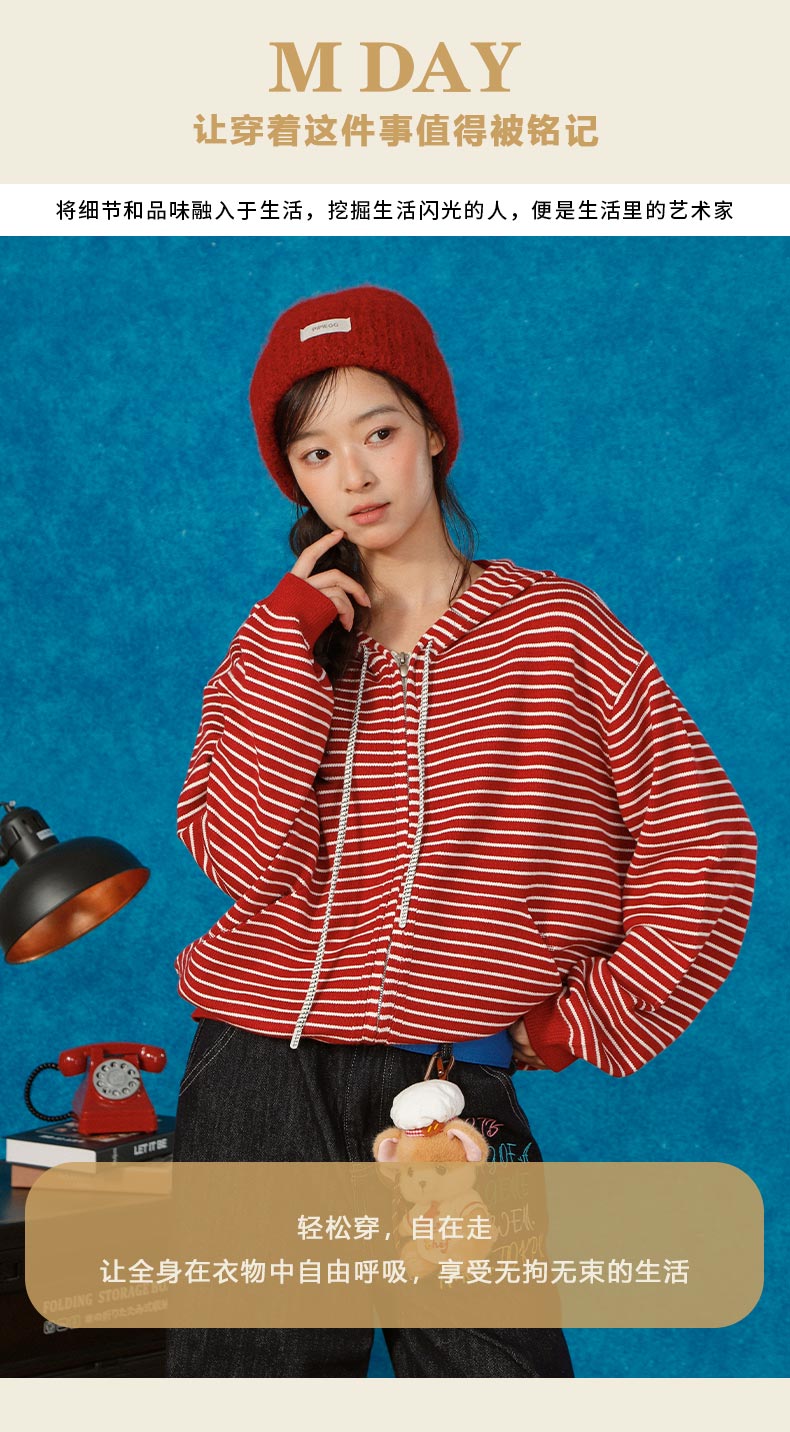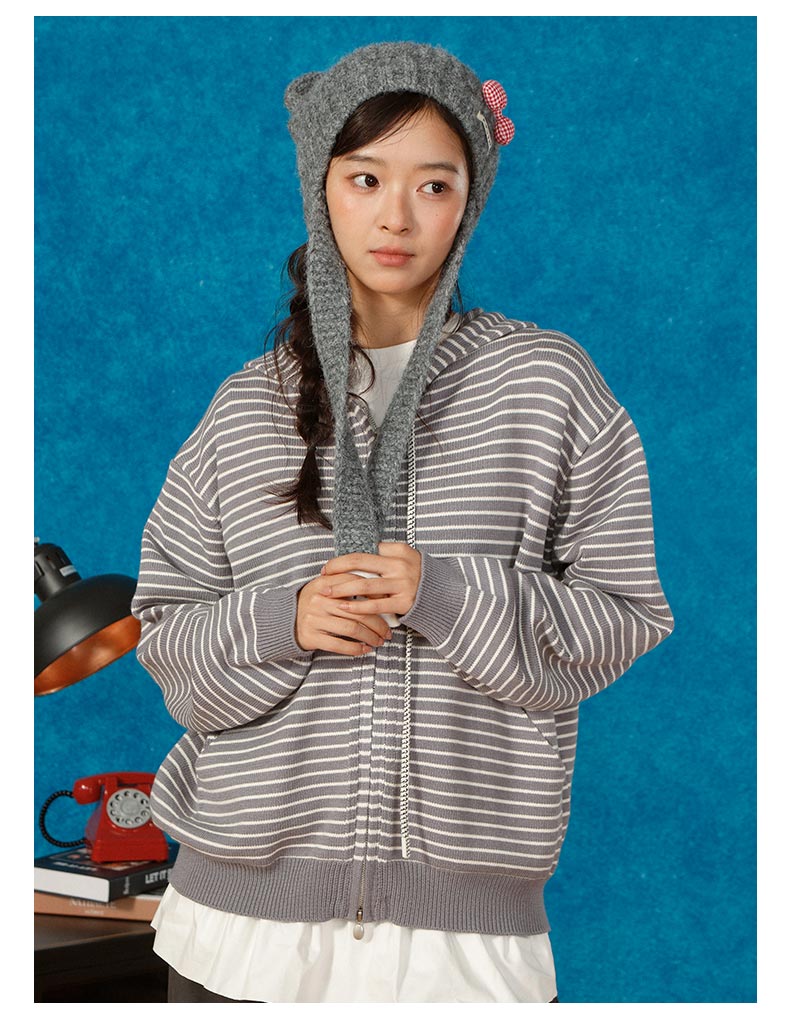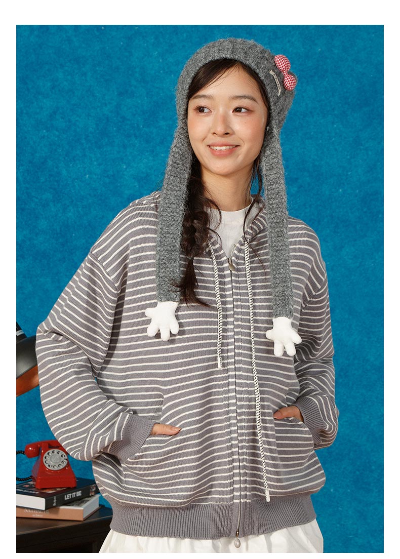 休闲连帽条纹开衫毛衣-纪念日百货门店同款165495216