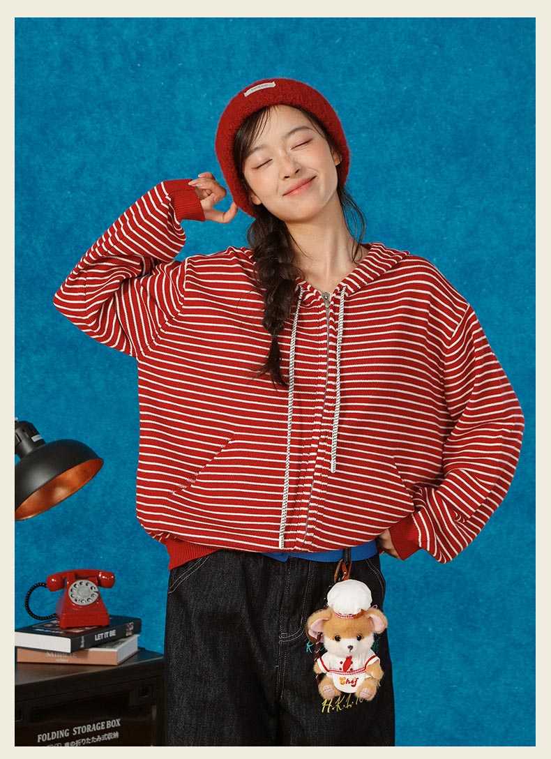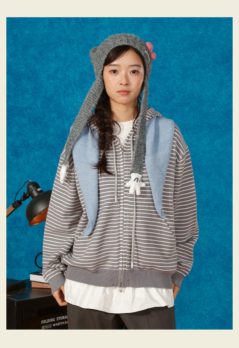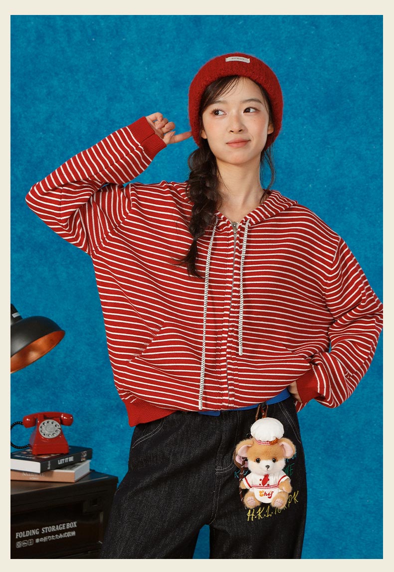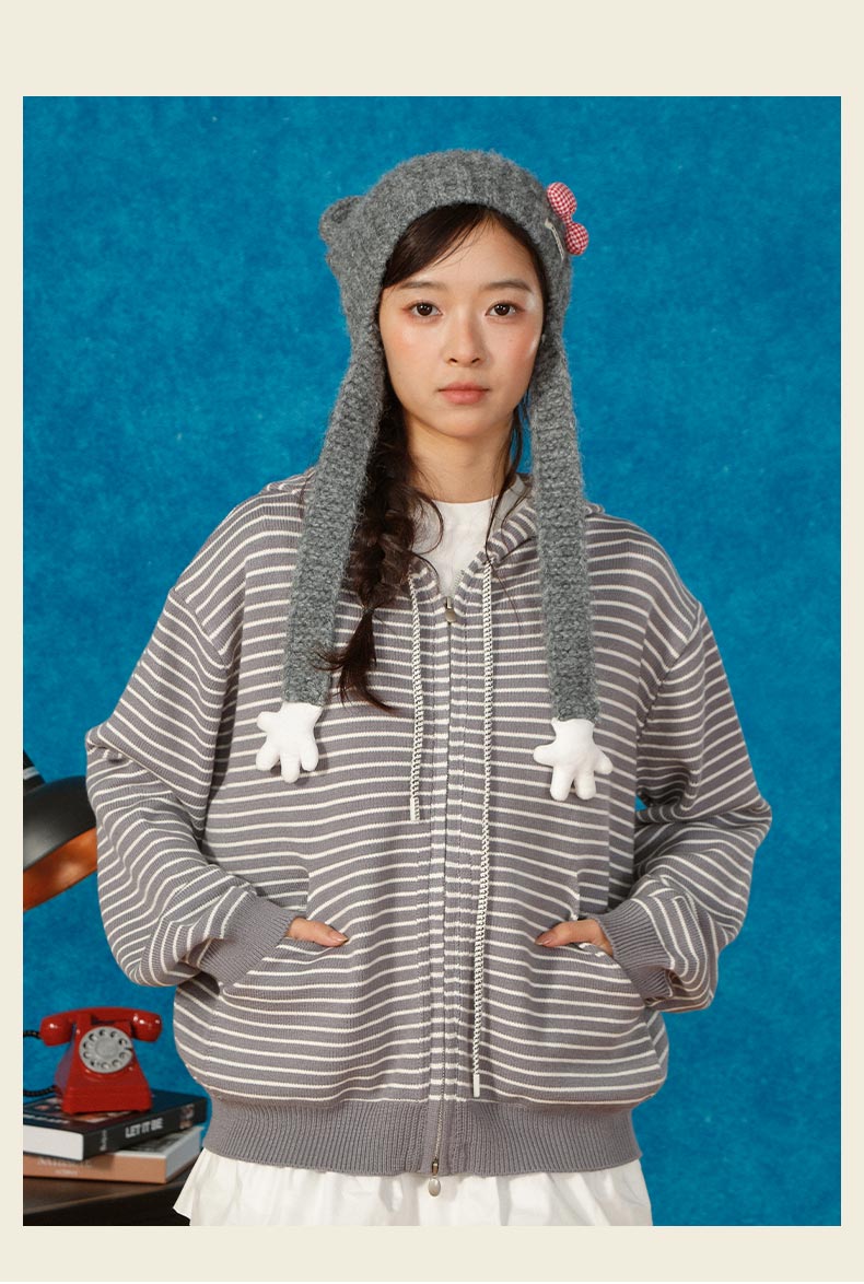 休闲连帽条纹开衫毛衣-纪念日百货门店同款165495216