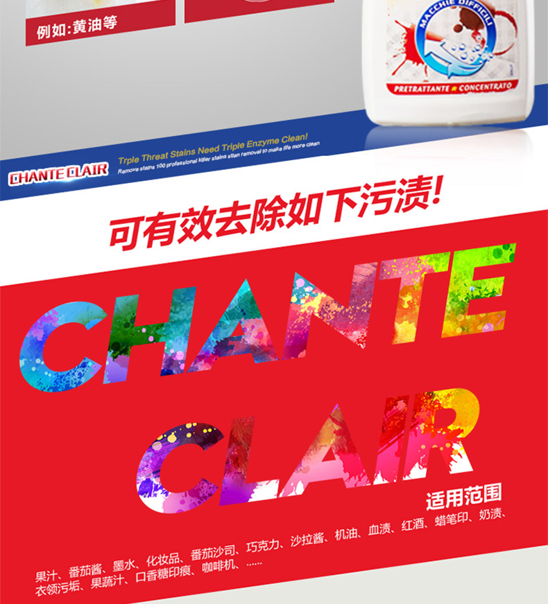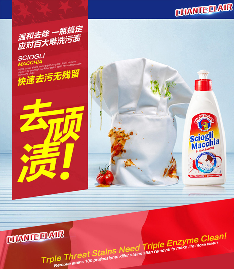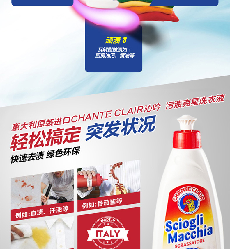 大公鸡头污渍克星清洗衣服去果汁顽固油渍去污强力清洗剂 375ml*3