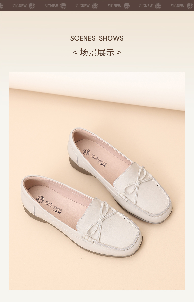 信诺2025年春季新款女鞋舒适英伦风真皮乐福鞋厚底坡跟单鞋妈妈鞋5C1950-2