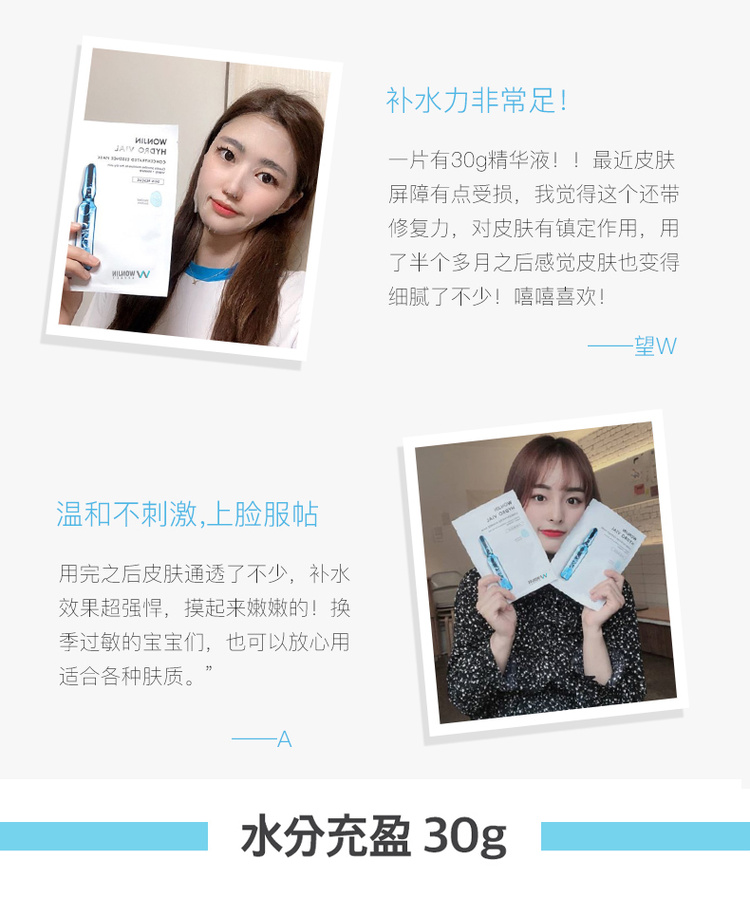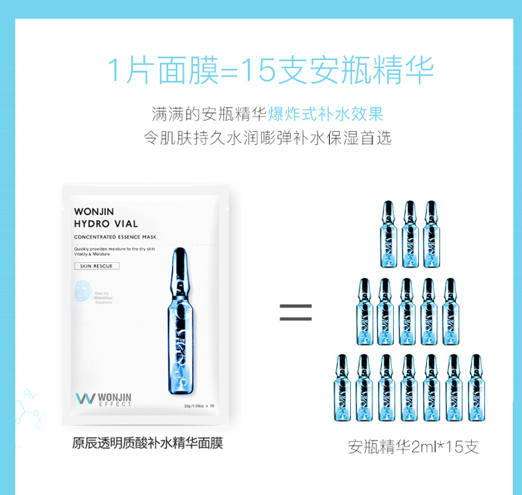 【中欧班列精选】Wonjin原辰安瓶面膜/玻尿酸面膜/元辰经典款10片一盒