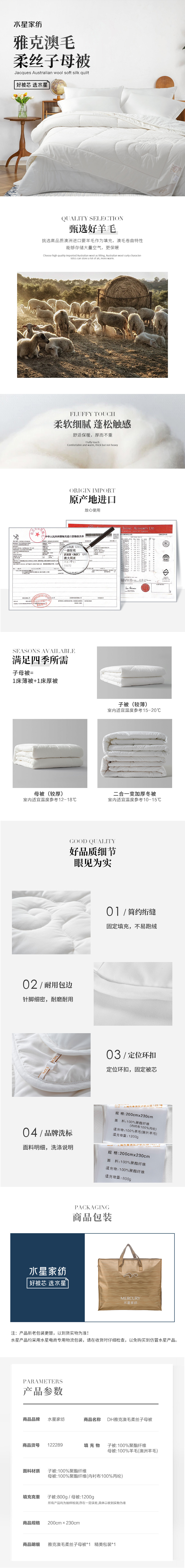 水星家纺DH雅克澳毛柔丝子母被122289