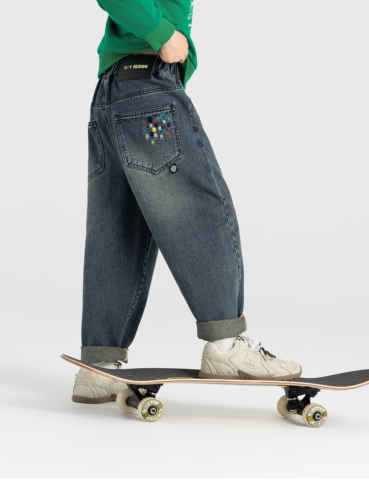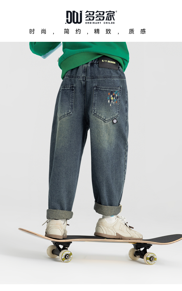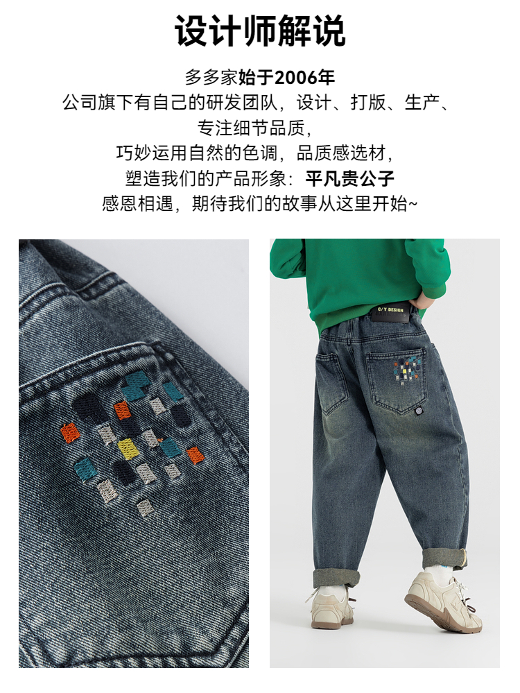【件件底价,童装双倍积分】多多家男童牛仔裤春秋季2025新款儿童刺绣直筒裤子男孩百搭长裤潮11205