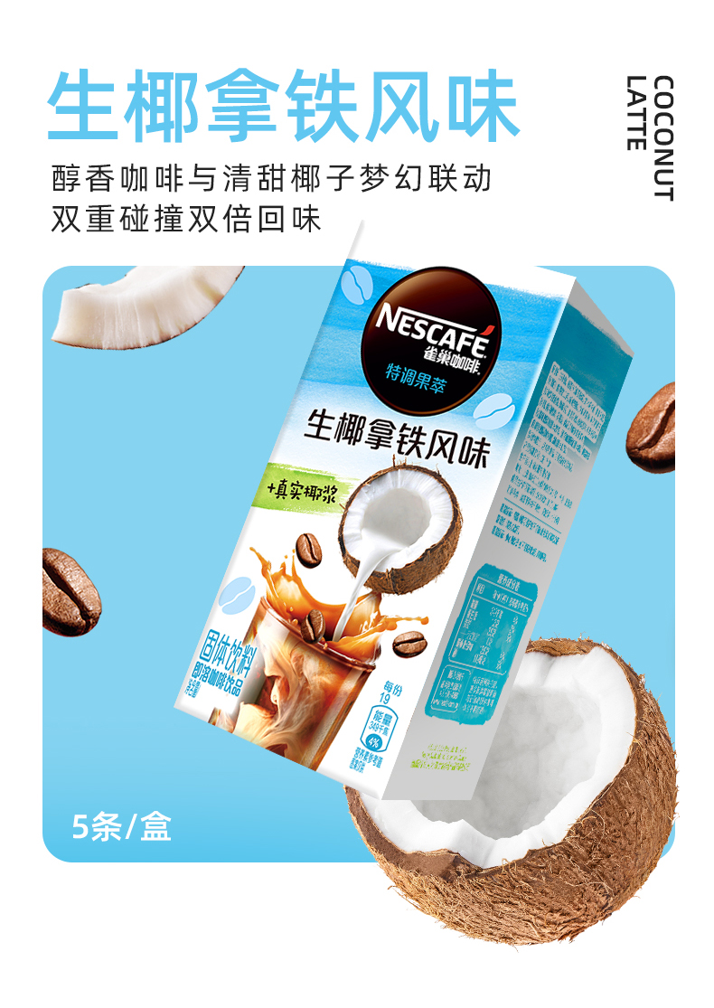 雀巢咖啡特调果萃系列焙烤椰子风味即溶咖啡饮品(5x19g)*4盒