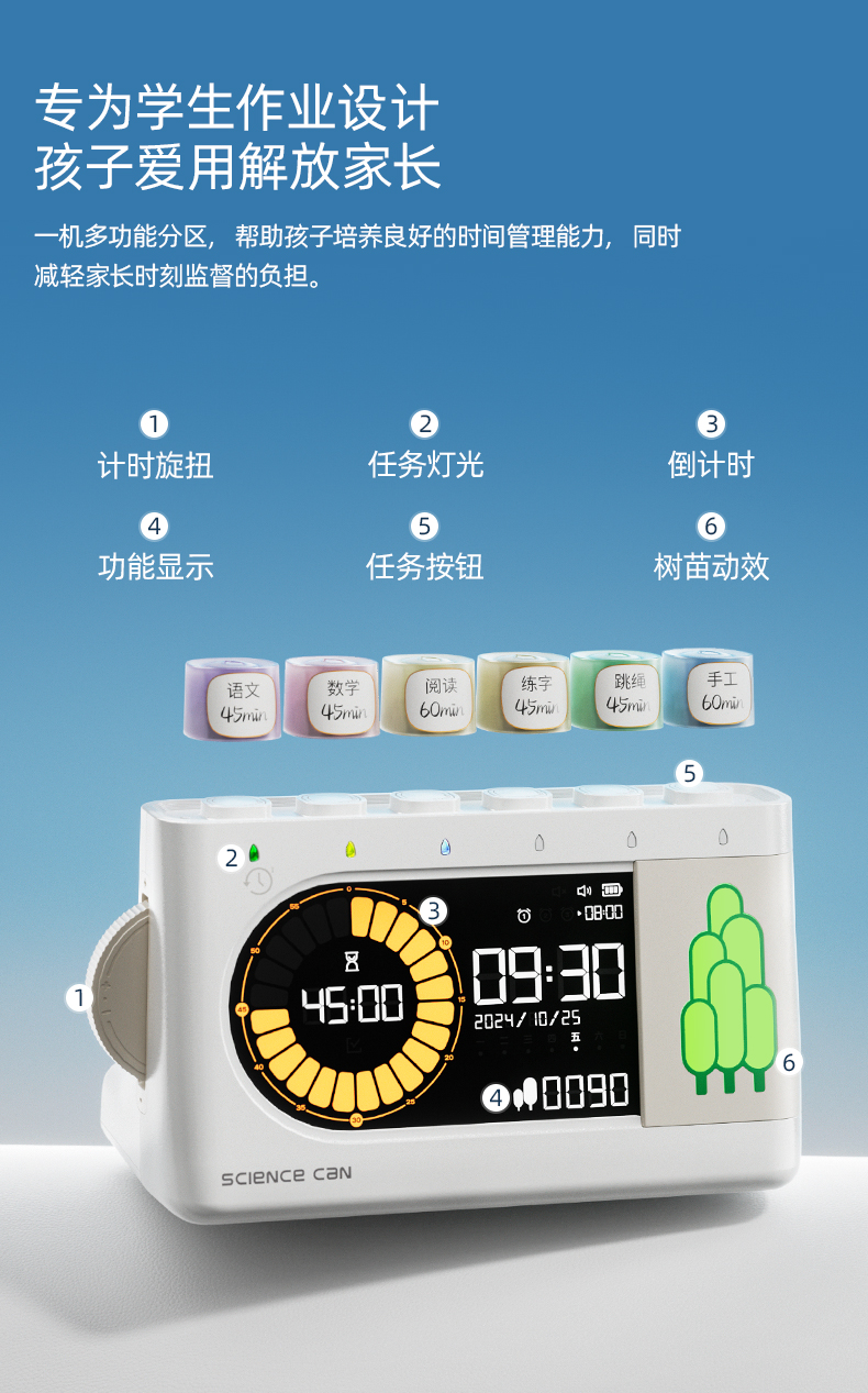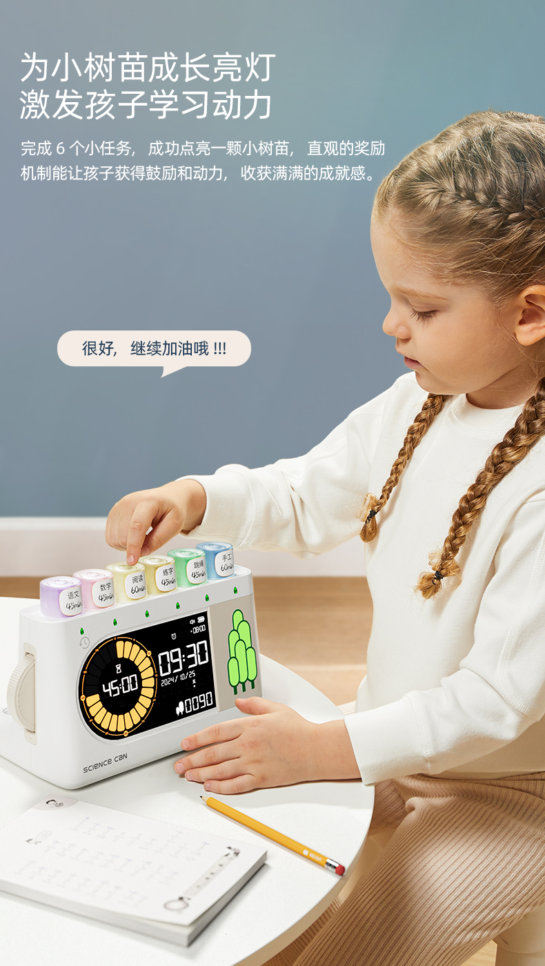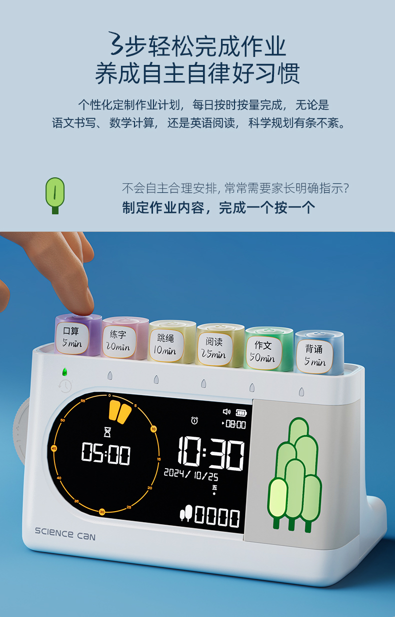 【3步轻松完成作业 科学养成好习惯】科学罐头树苗作业打卡机 中小学生专用自律时间管理神器 学生作业打卡机