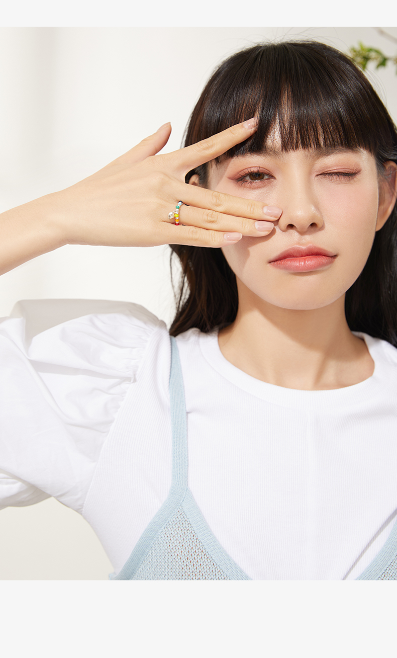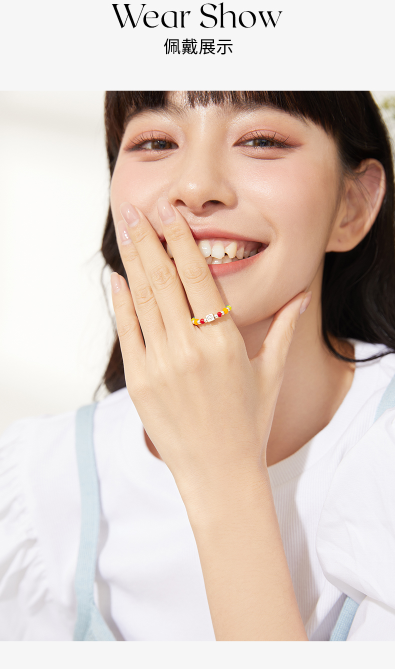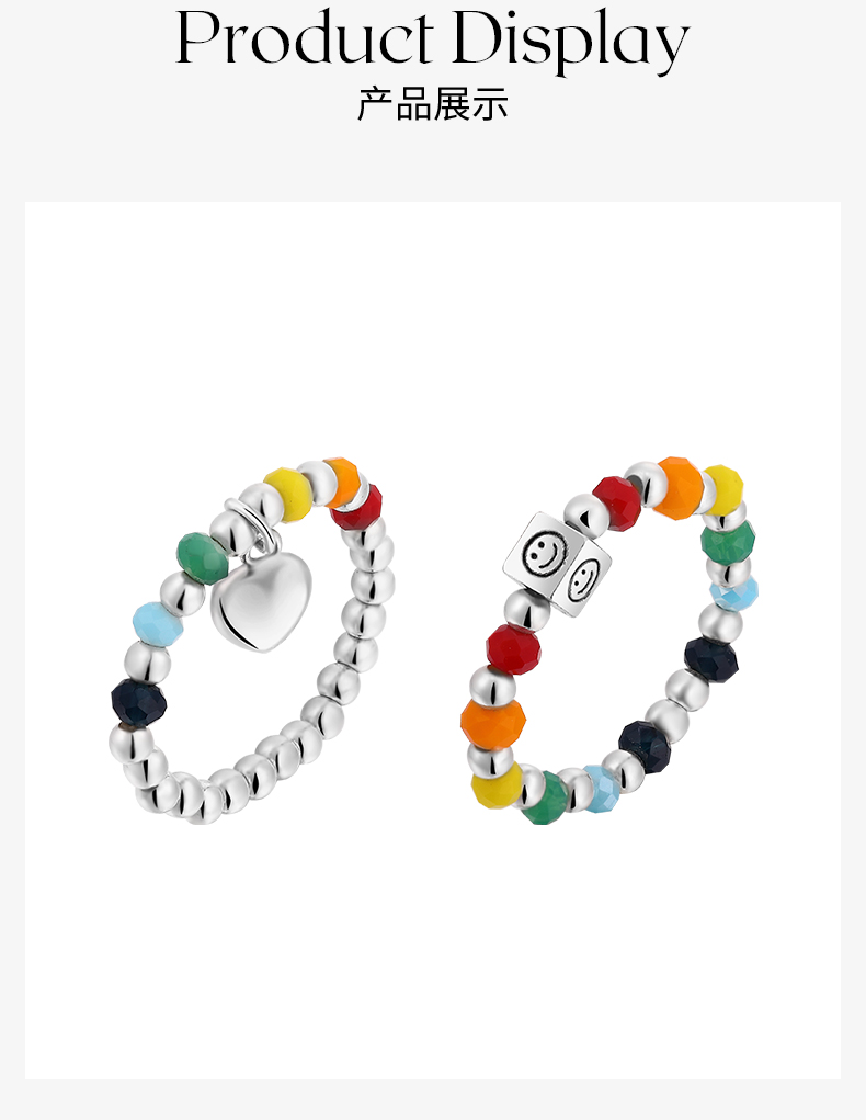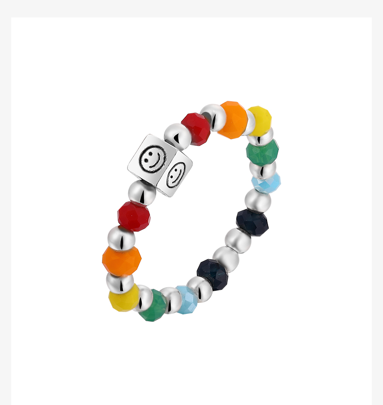ZEGL彩虹串珠手链戒指女夏日多巴胺穿搭笑脸彩色小众设计闺蜜手饰