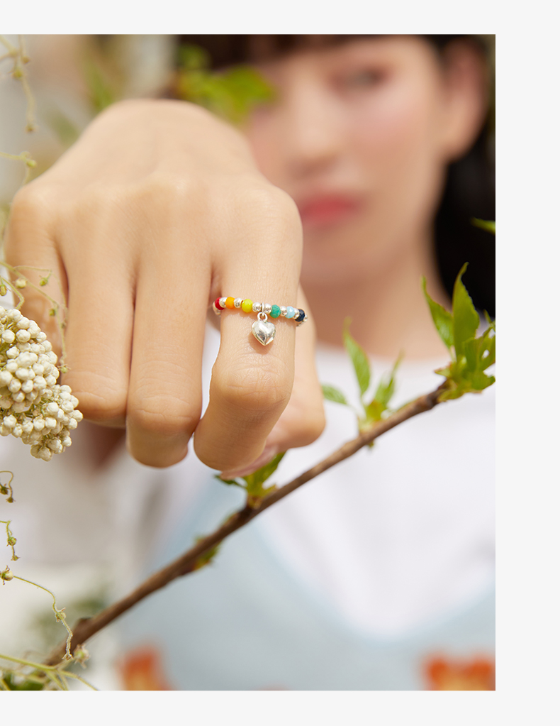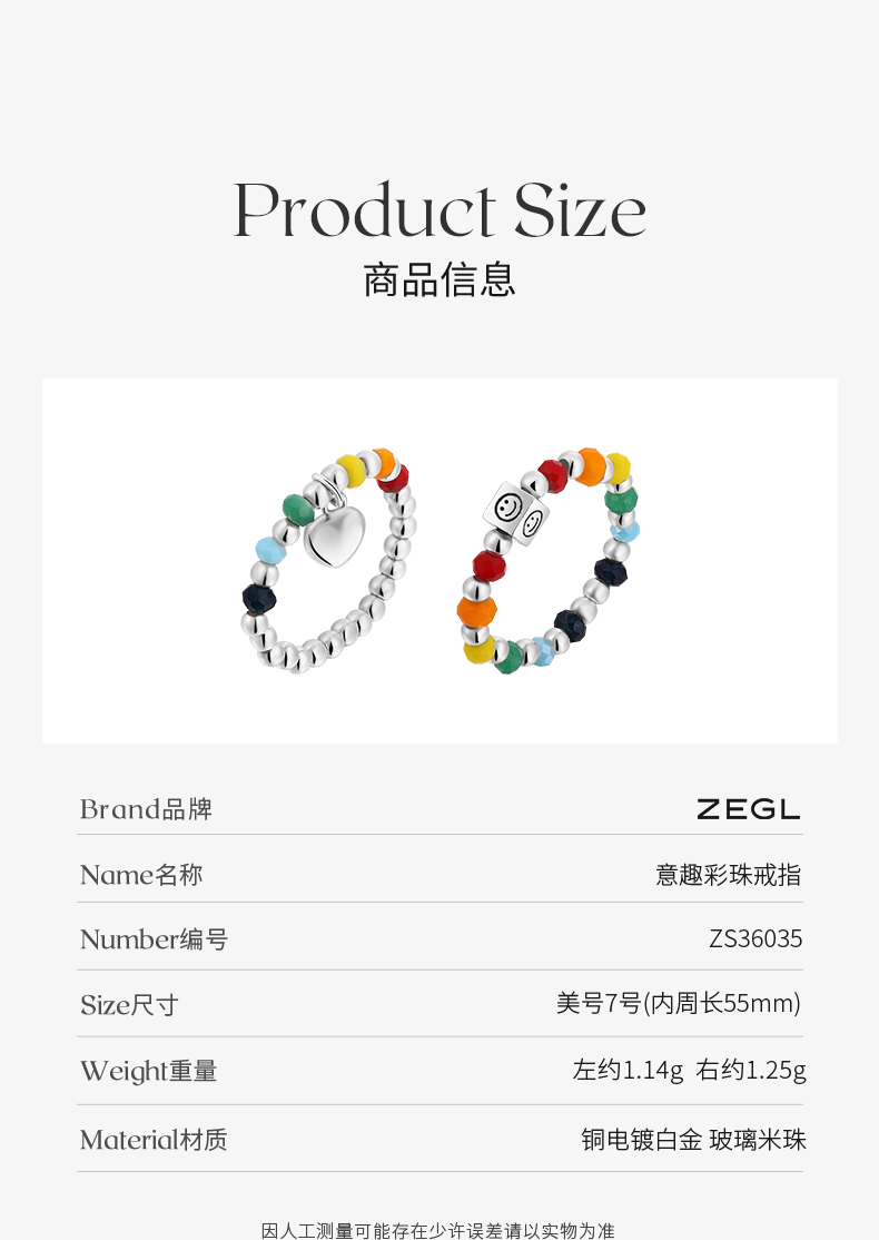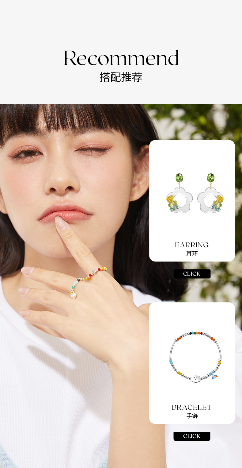 ZEGL彩虹串珠手链戒指女夏日多巴胺穿搭笑脸彩色小众设计闺蜜手饰