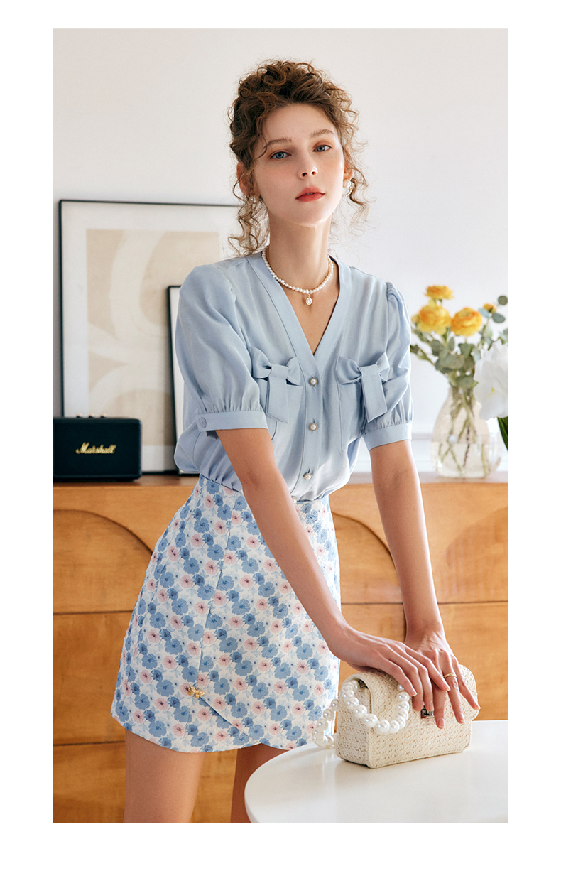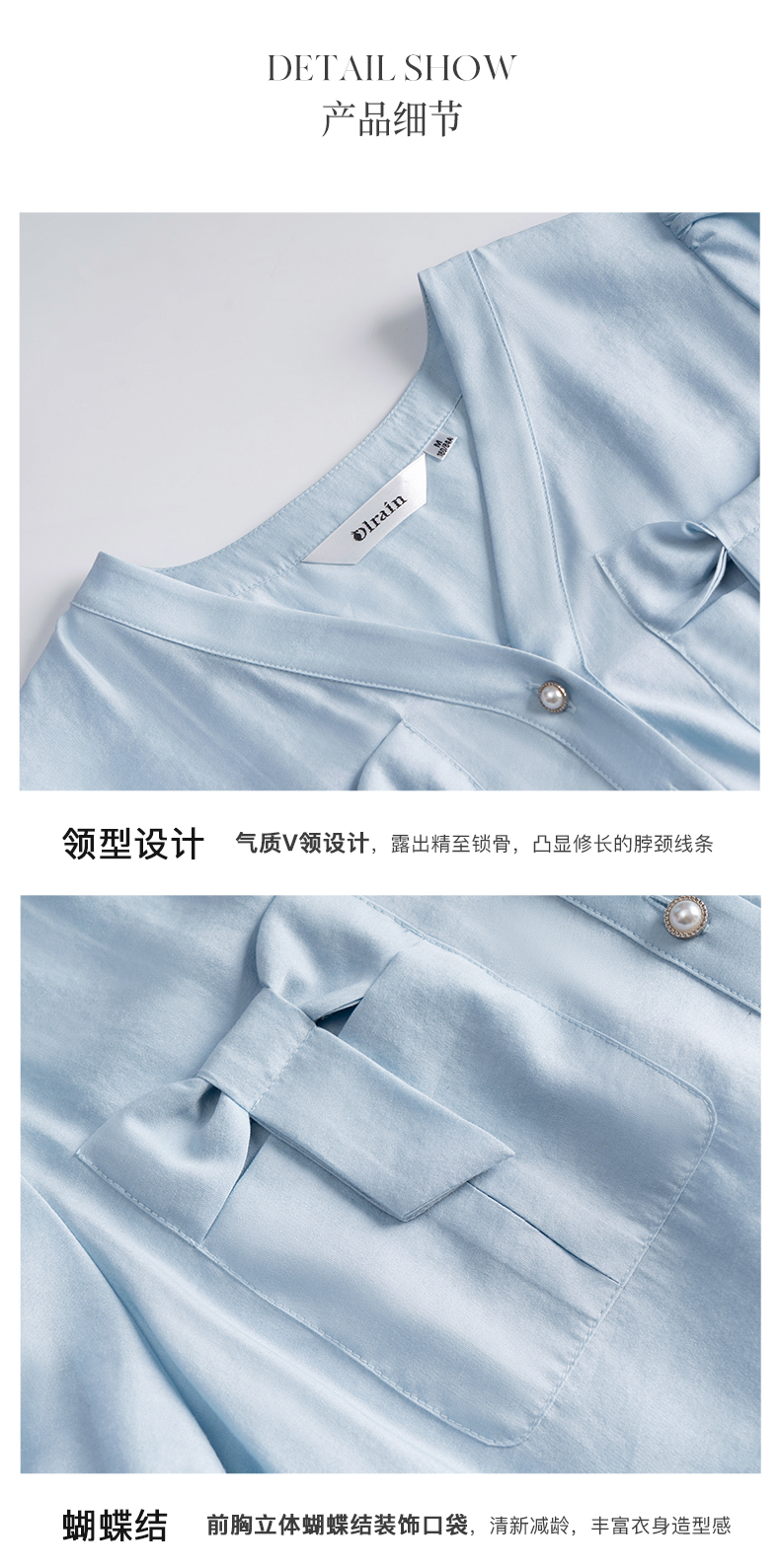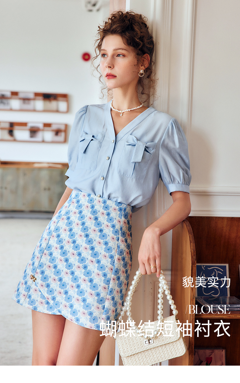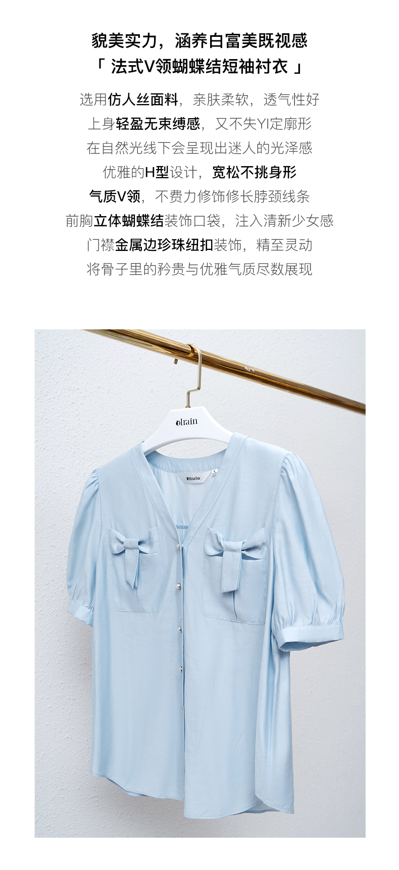 OLrain法式高级穿搭V领衬衫女夏季2022新款宽松显瘦蝴蝶薄款衬衣