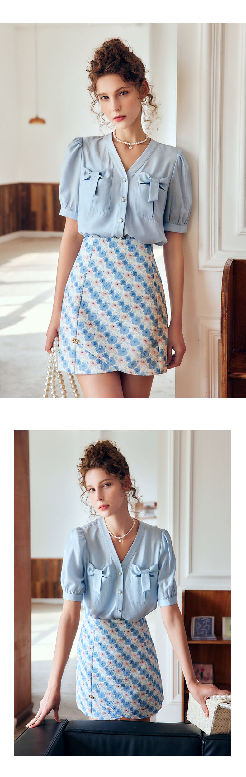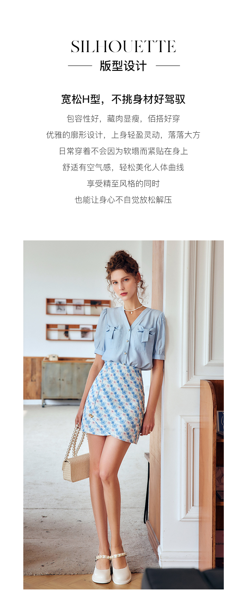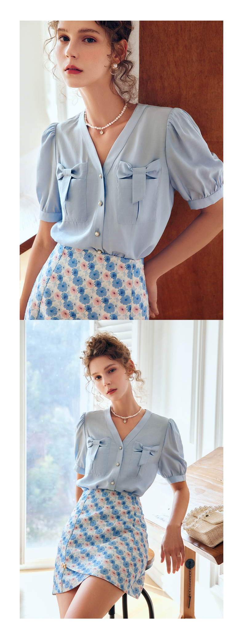 OLrain法式高级穿搭V领衬衫女夏季2022新款宽松显瘦蝴蝶薄款衬衣