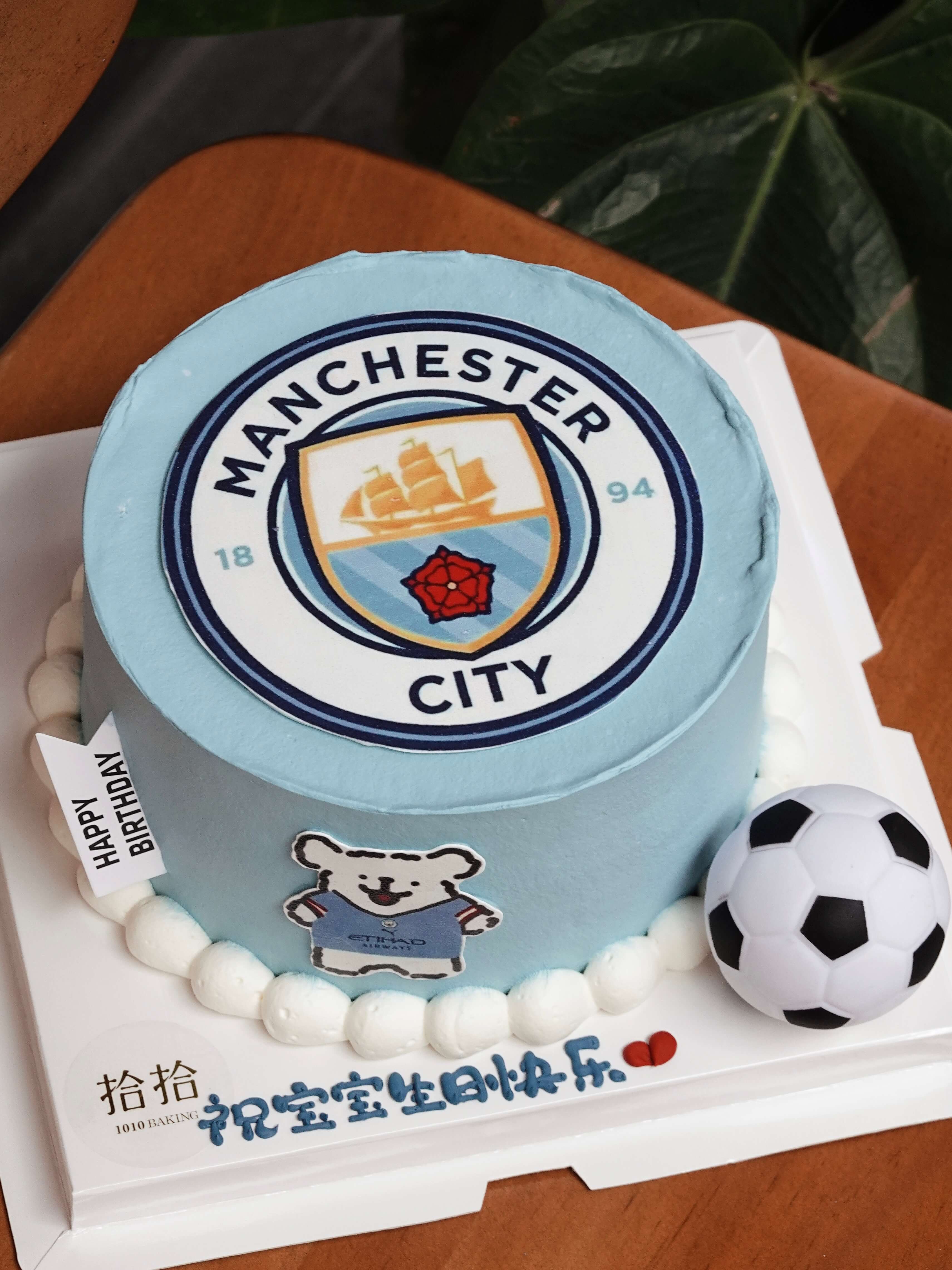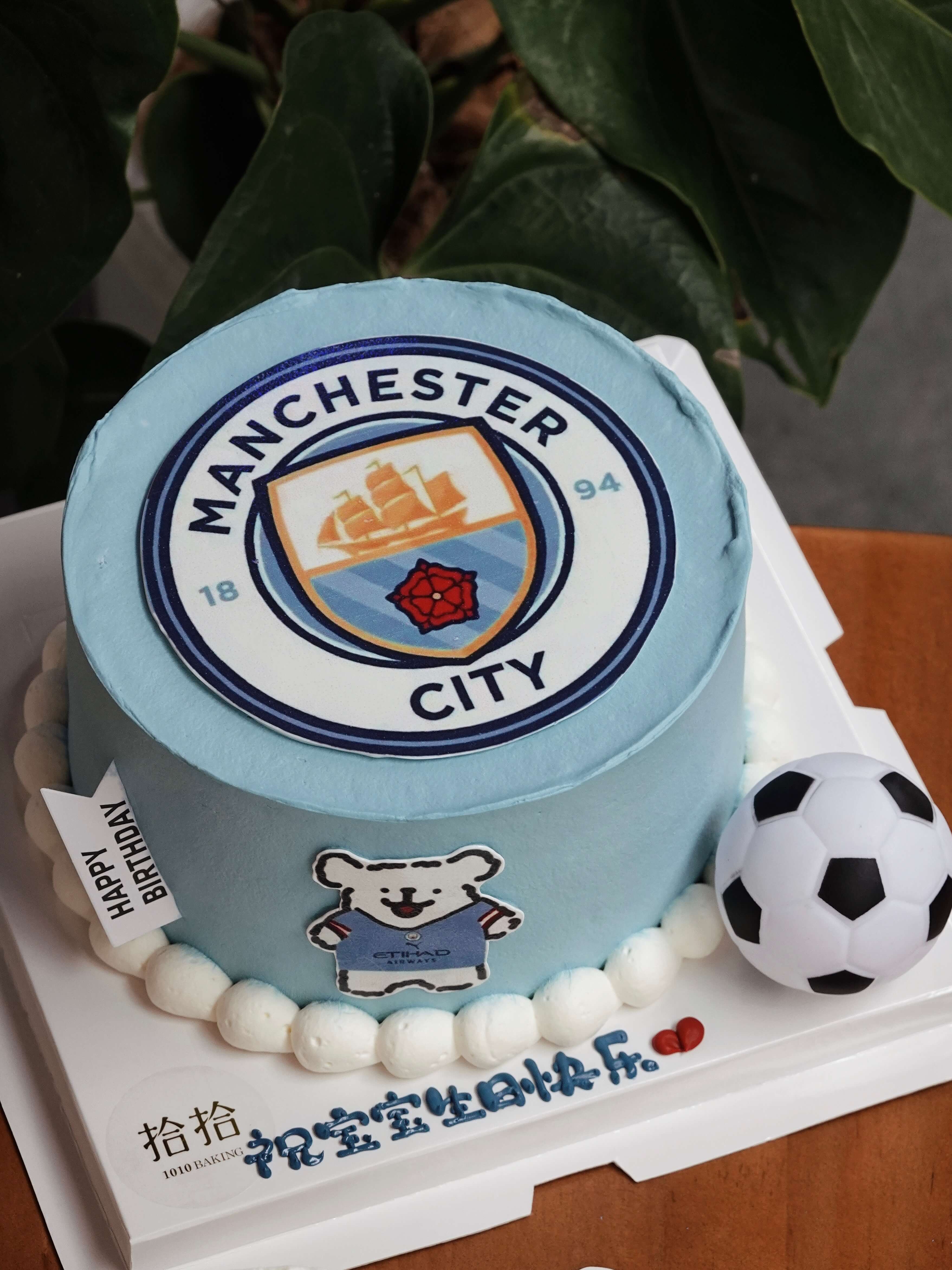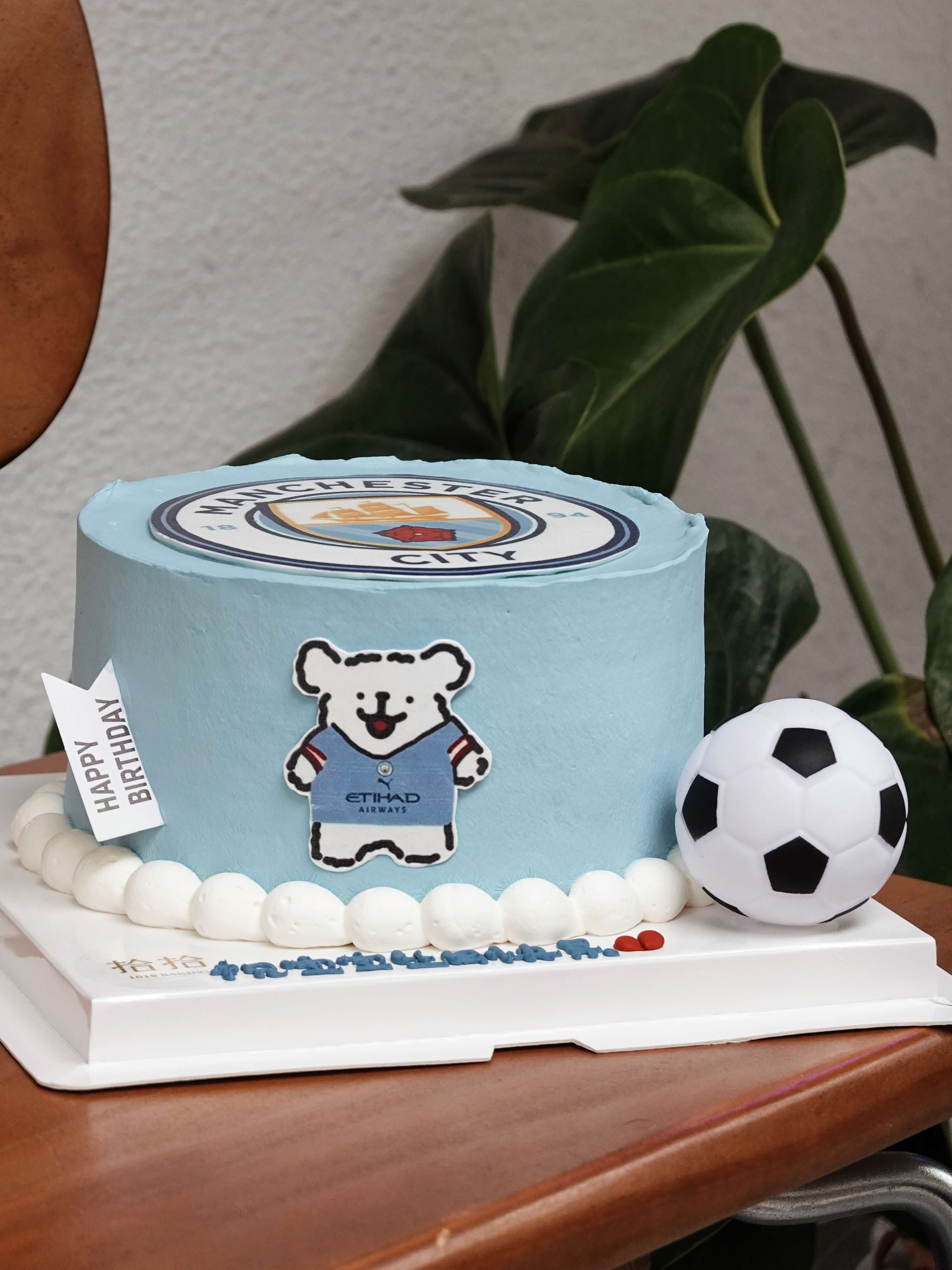 「曼城球迷·足球蛋糕」巧克力糯米糖纸·订制照片·100%动物奶油(附图6寸·提前24小时预订)