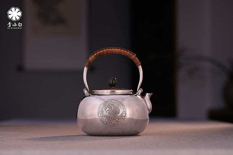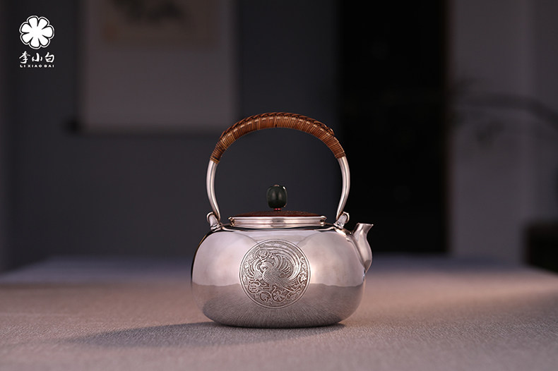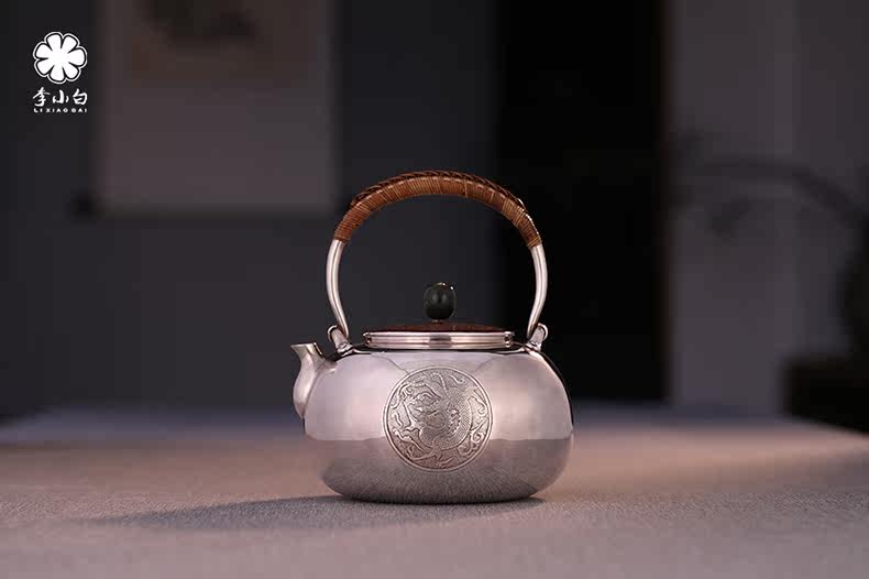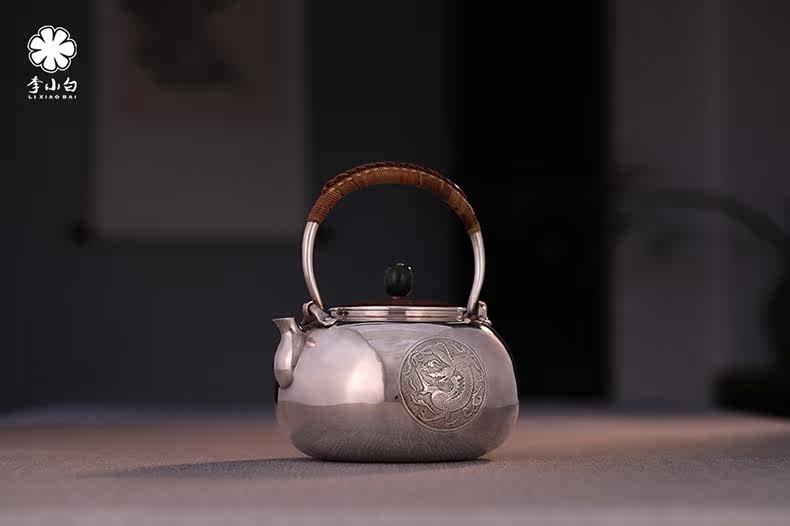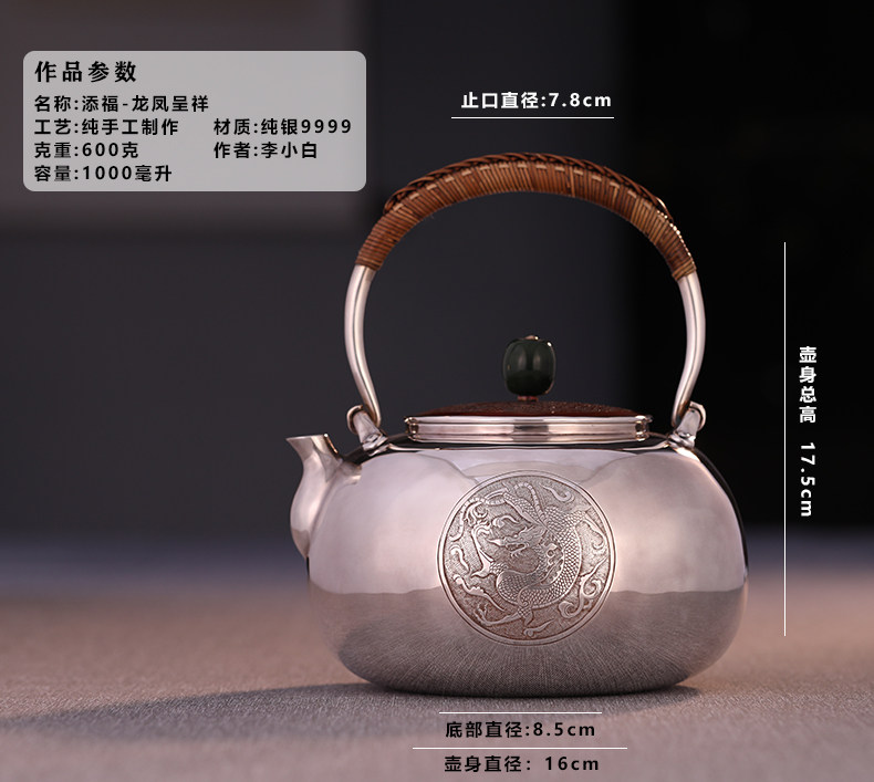 李小白银壶 纯银9999烧水壶 纯银银壶 烧水银壶 茶壶银壶 添福 龙凤呈祥