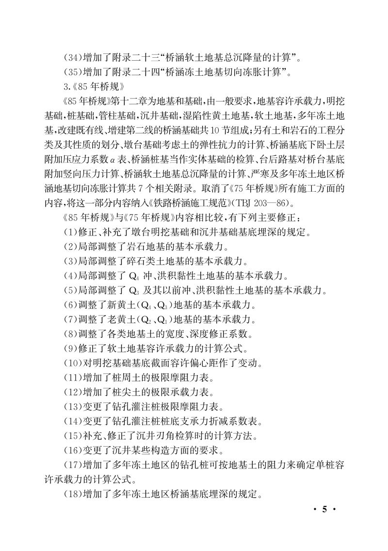 本书共分十二章,包含概述、总则、基础稳定性和基础沉降、地基承载力、明挖基础、桩基础、沉井基础、挖井基础、特殊地基、改建既有线和增建第二线的桥涵基础、土和岩石的工程分类及其性质的划分、关于“总则”的几个问题、关于“基础稳定性和基础沉降”的几个问题、铁路桥涵工程地质勘察工作内容及深度、钢筋混凝土承台强度检算方法等内容,阐述了《铁路桥涵地基和基础设计规范》修订的背景和必要性,以及在修订过程中,对各个章节的考虑和讨论,较为深入的剖析了其中的因果关系。