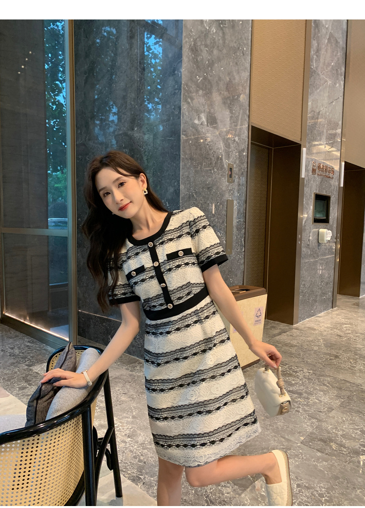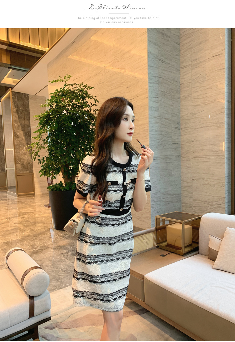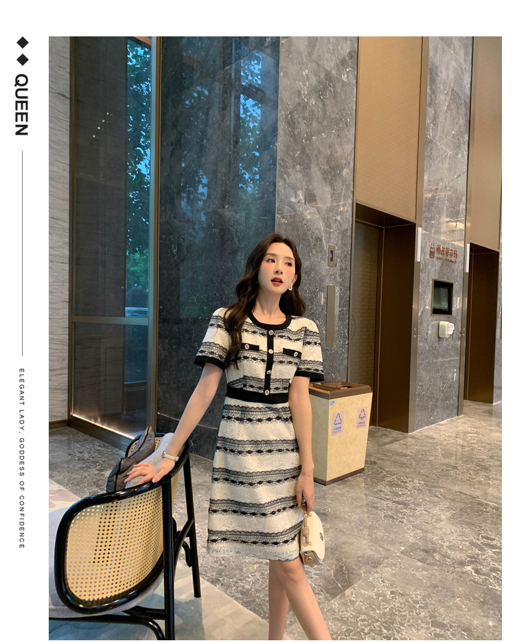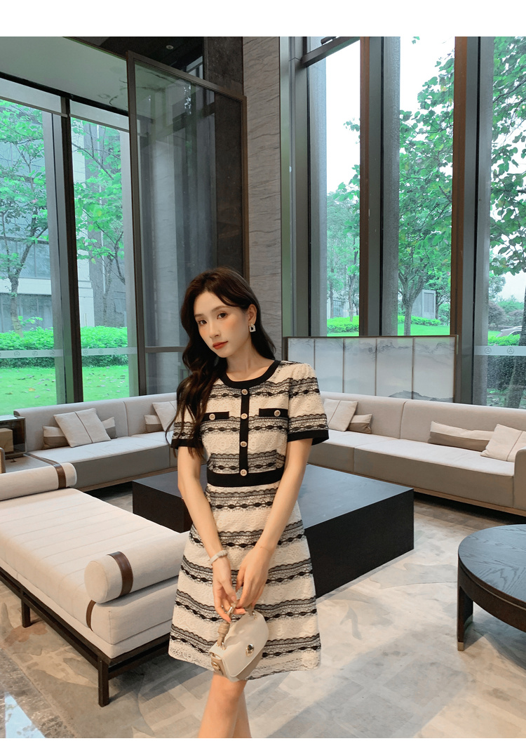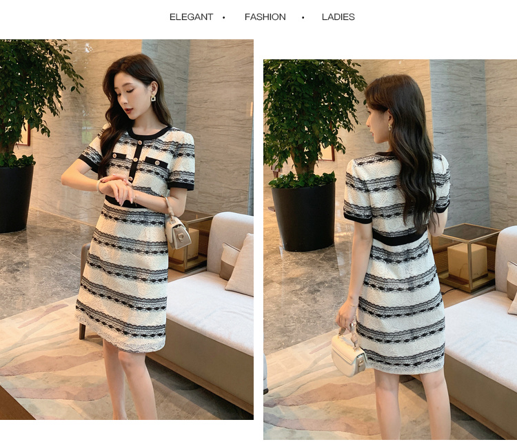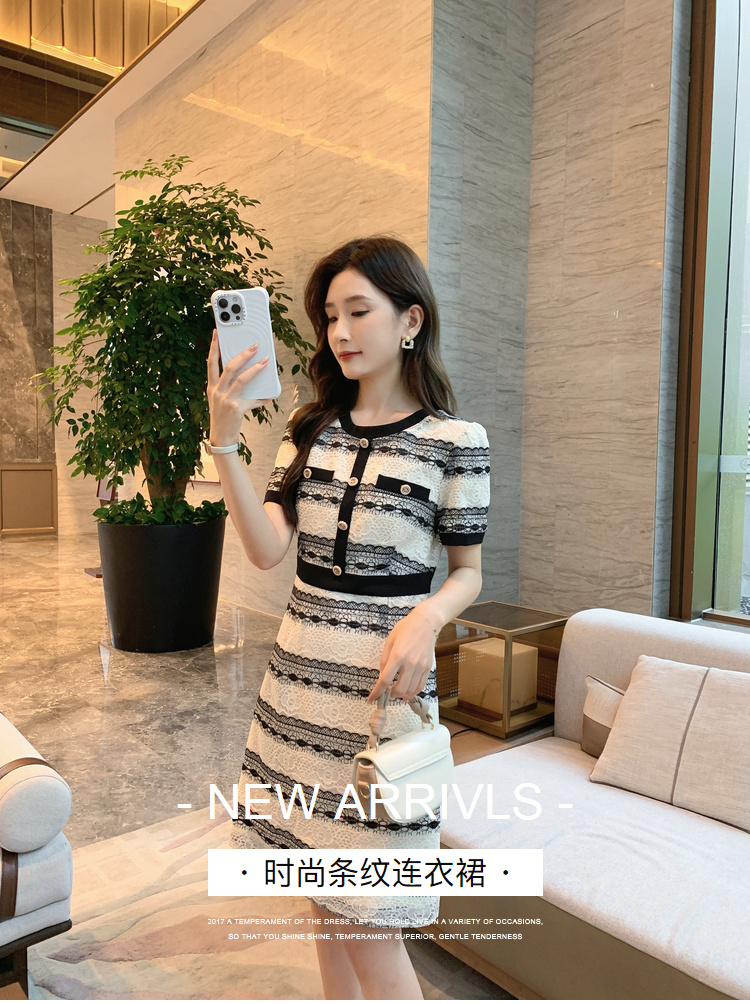 [奢姿轻奢系列]大码女装2025夏季减龄条纹裙子胖妹妹时尚连衣裙8942890116【1】