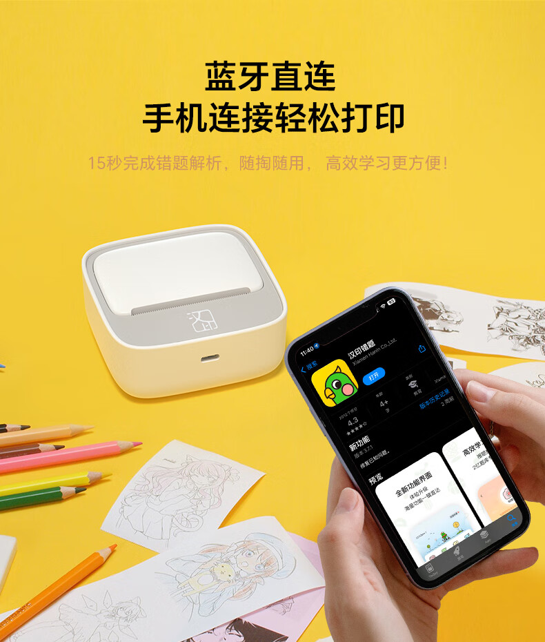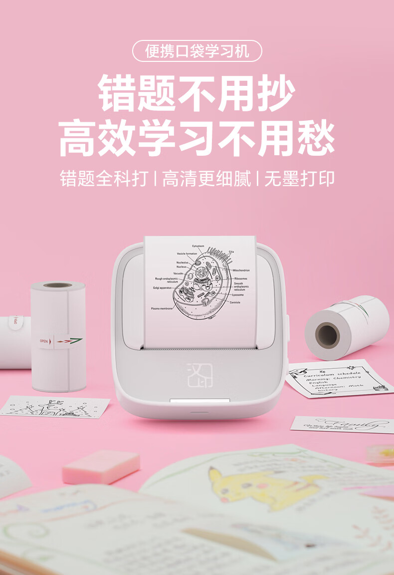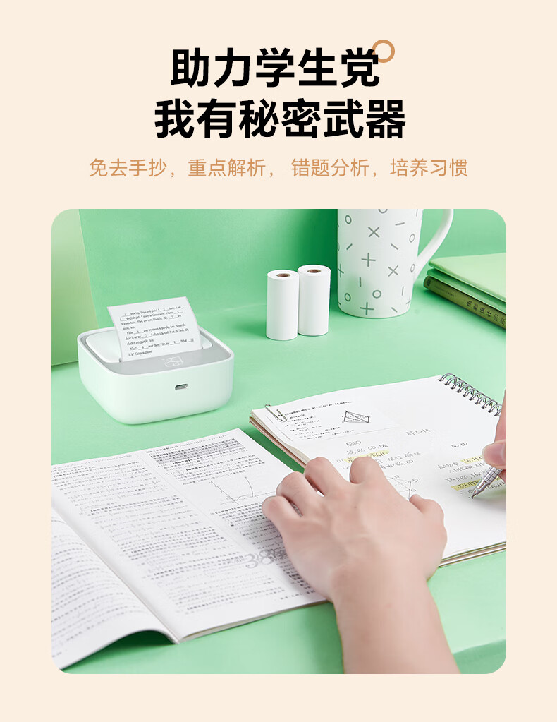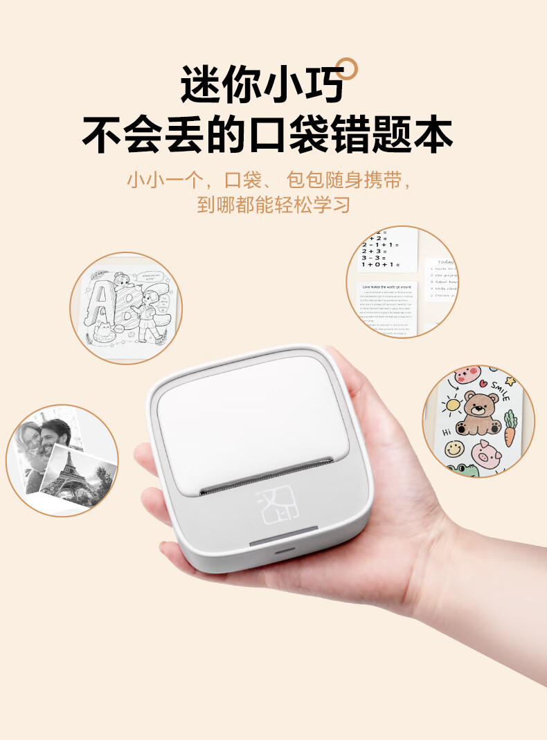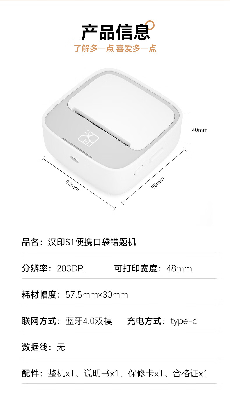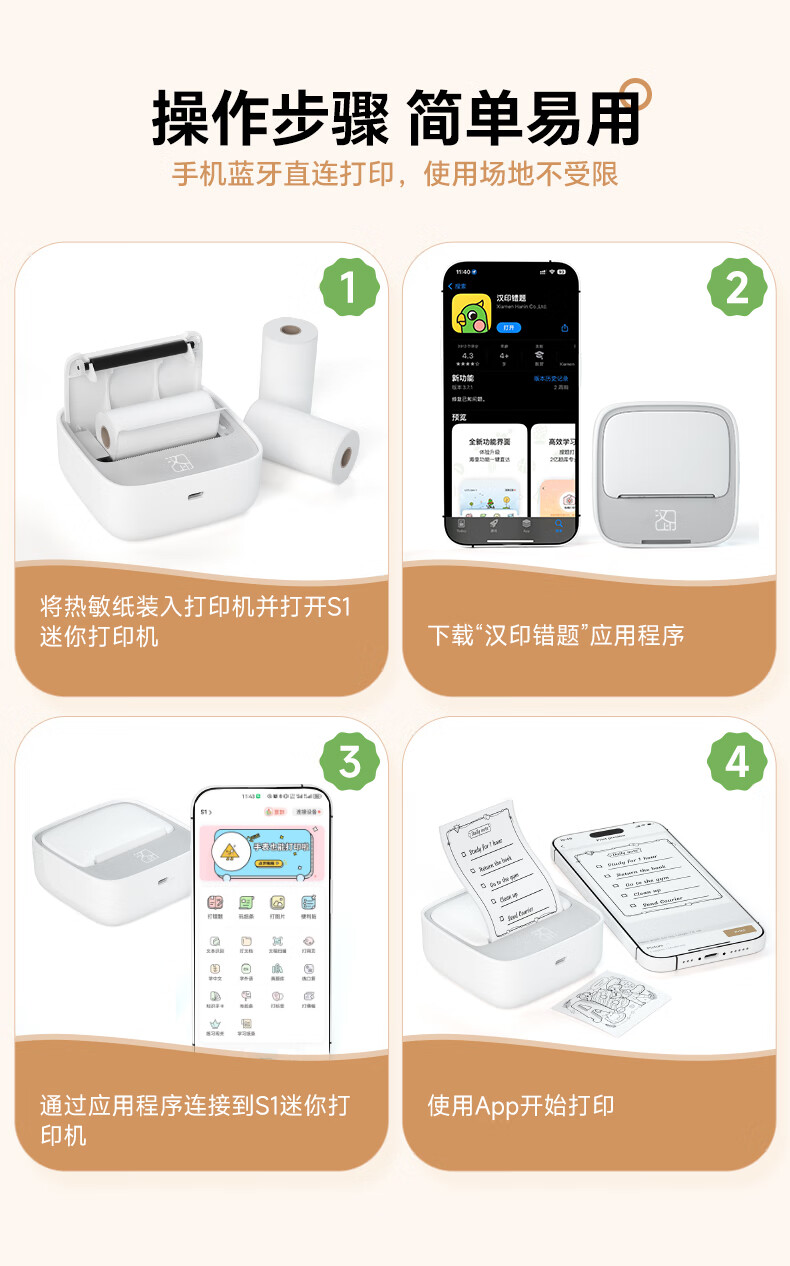 汉印S1错题打印机学生便携式错题免抄神器小学初高中生错题扫描迷你小型打印机家用小型喵喵机手机蓝牙 S1错题打印机【203dpi+48mm宽幅】