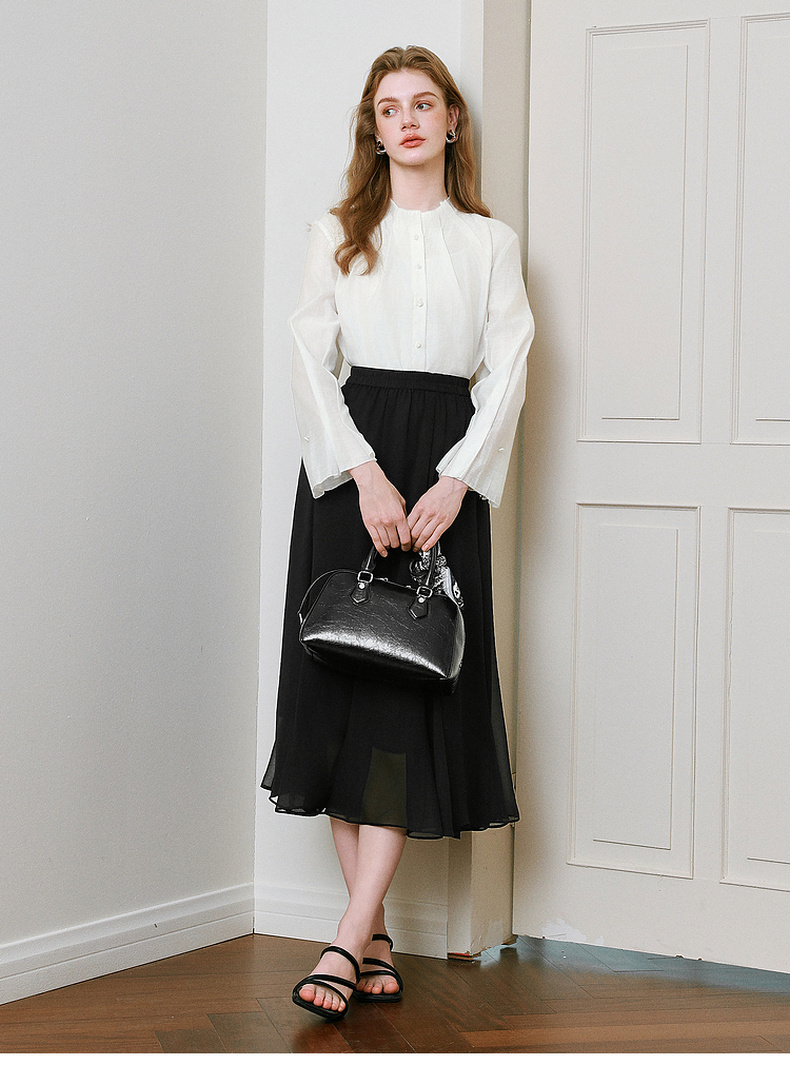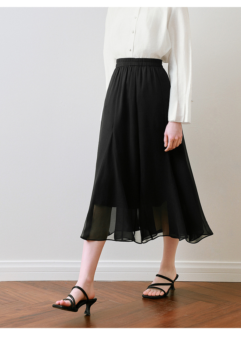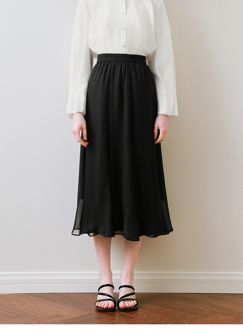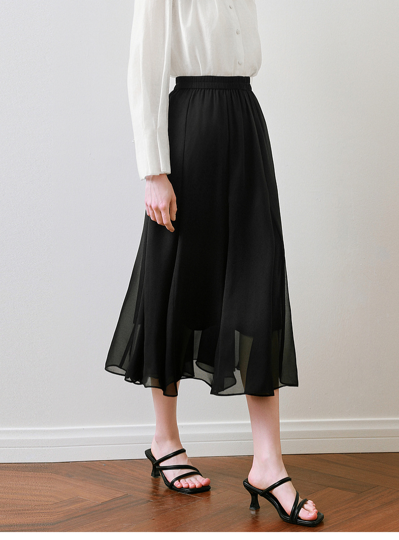 【商场同款】诗凡黎黑色半身裙2025夏新款A字长款纱裙3G4140551
