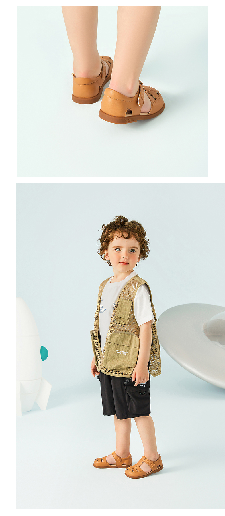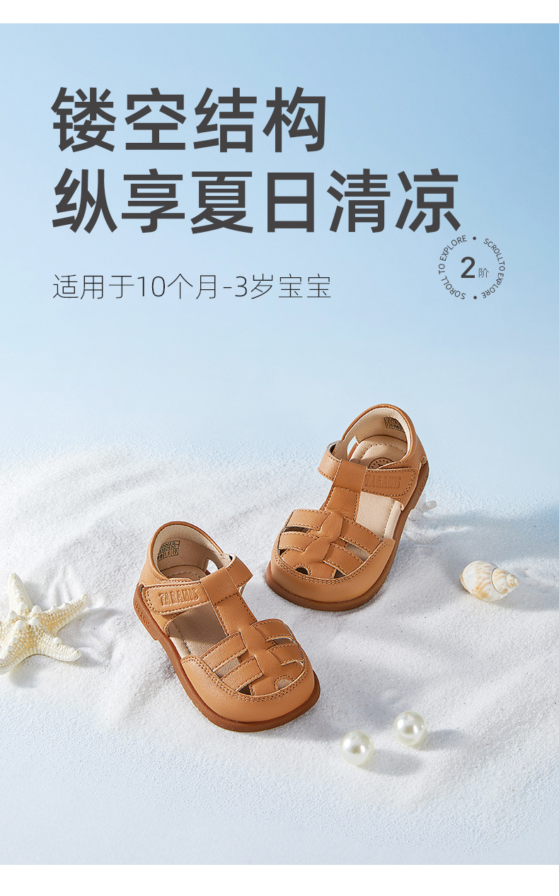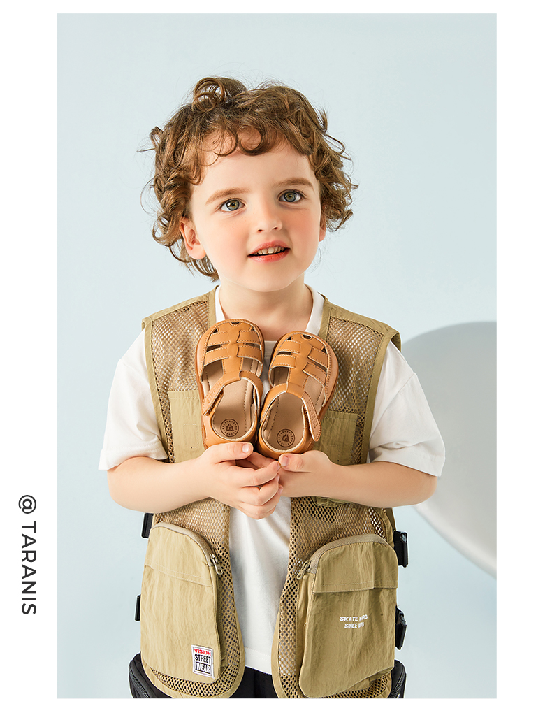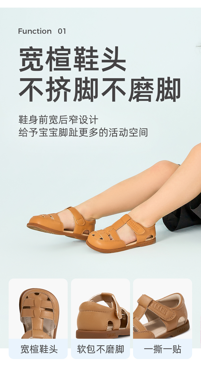 泰兰尼斯夏季童鞋婴童超纤镂空男妇宝宝鞋T字带魔术贴学步鞋