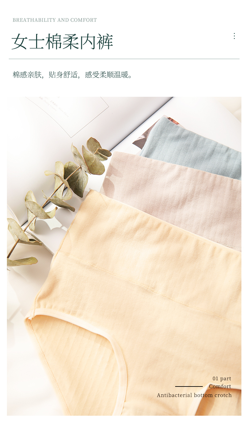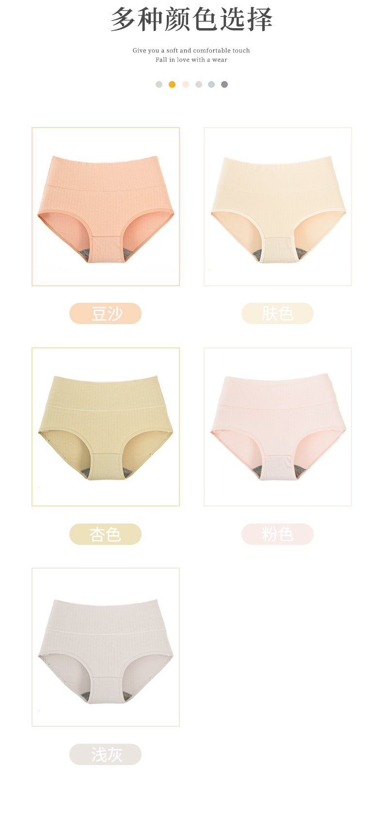 洁丽雅4条装高腰纯棉女士内裤纯色简约双层纯棉裆舒适亲肤三角裤女
