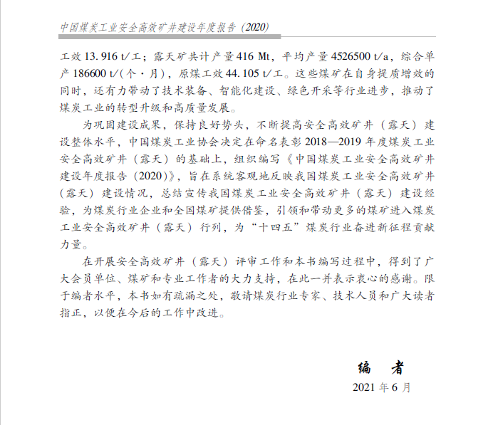 中国煤炭工业安全高效矿井建设年度报告(2020)