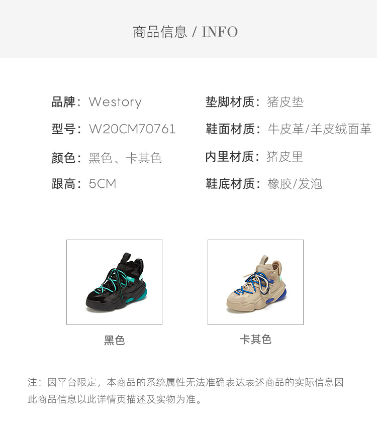 westory商场同款2020冬季老爹鞋女ins潮新款厚底高帮运动鞋百搭W20CM70761