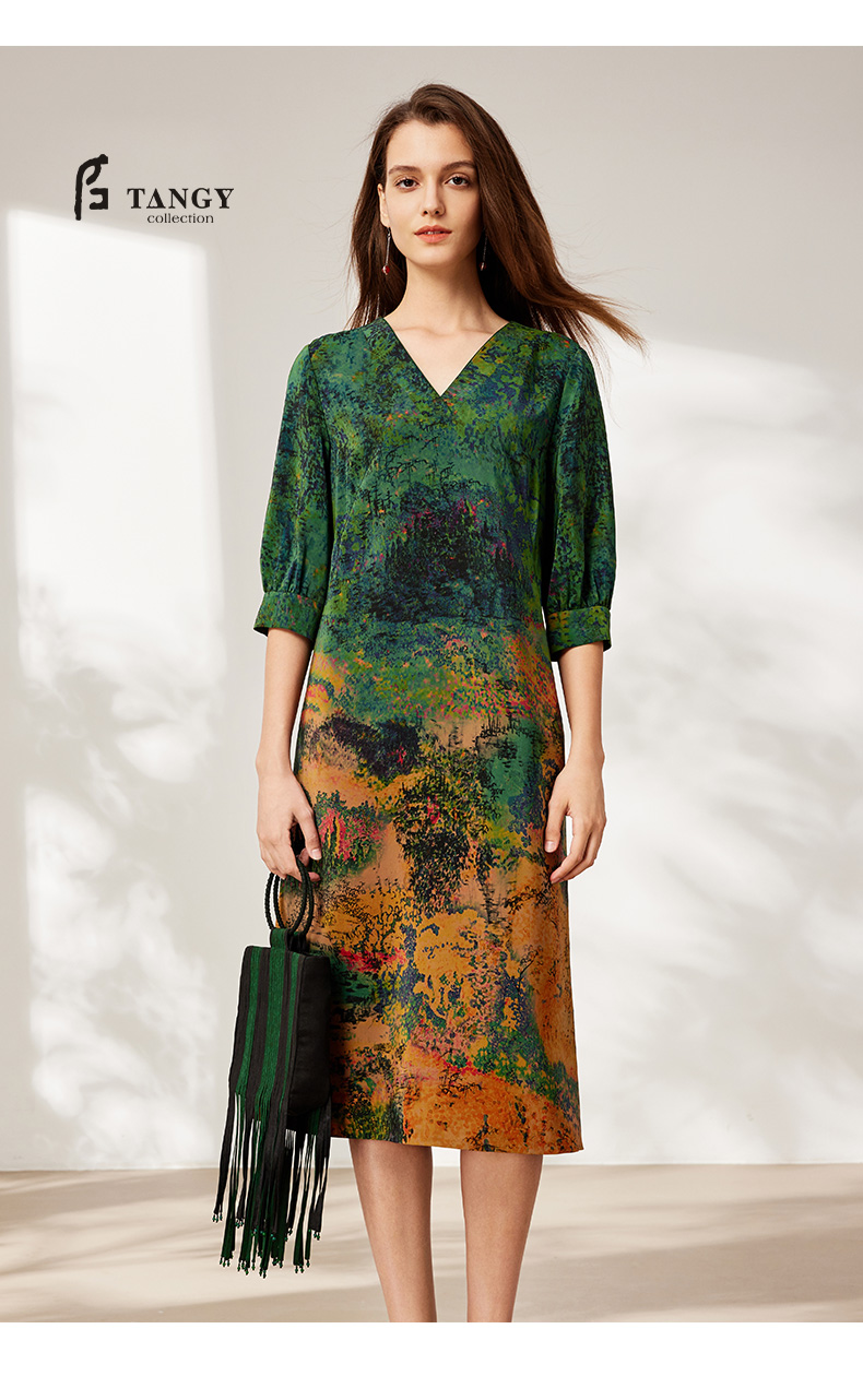 TANGY Collection天意2025秋季新品商场同款女印花连衣裙L253809