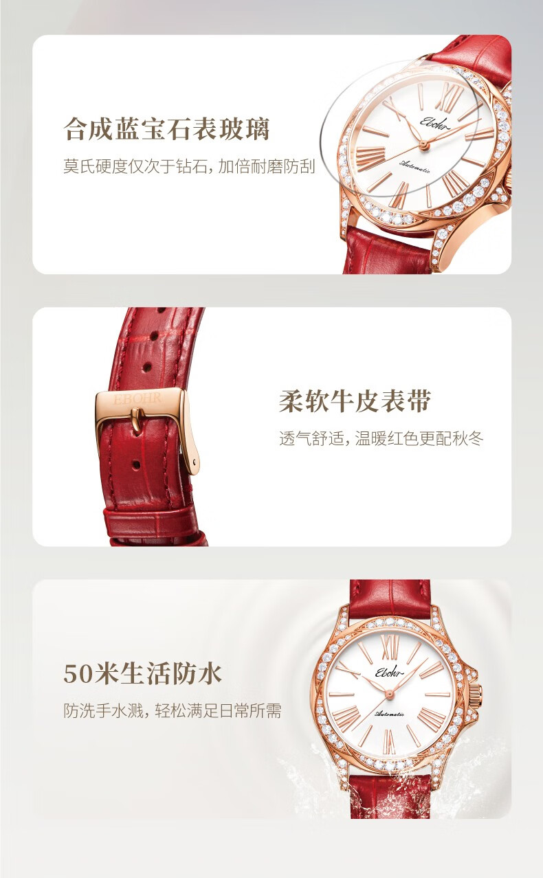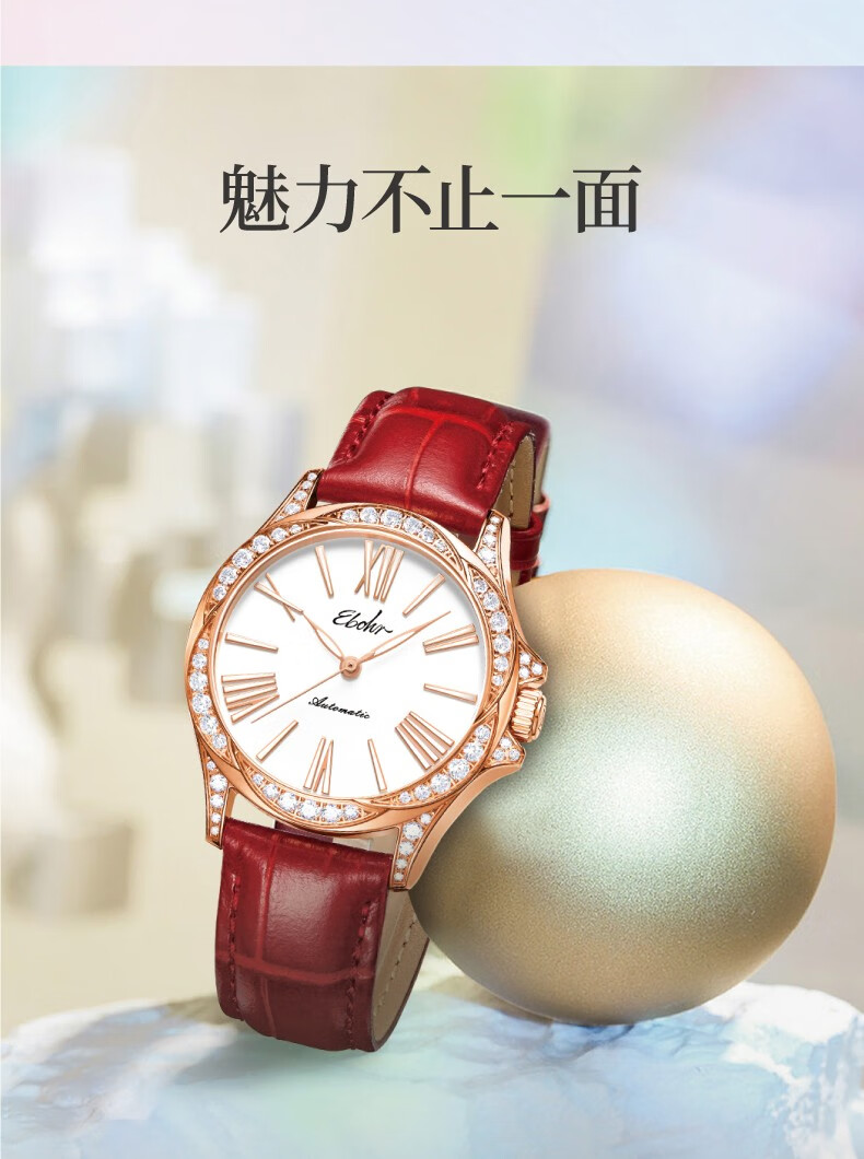 依波(EBOHR)卡纳系列时尚石英女手表转运珠赠皮带礼盒5143