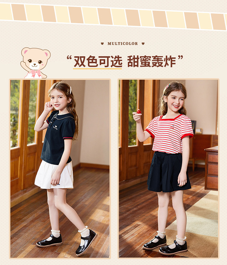 【纳维凯尔】【120-165】女童夏季短袖T恤