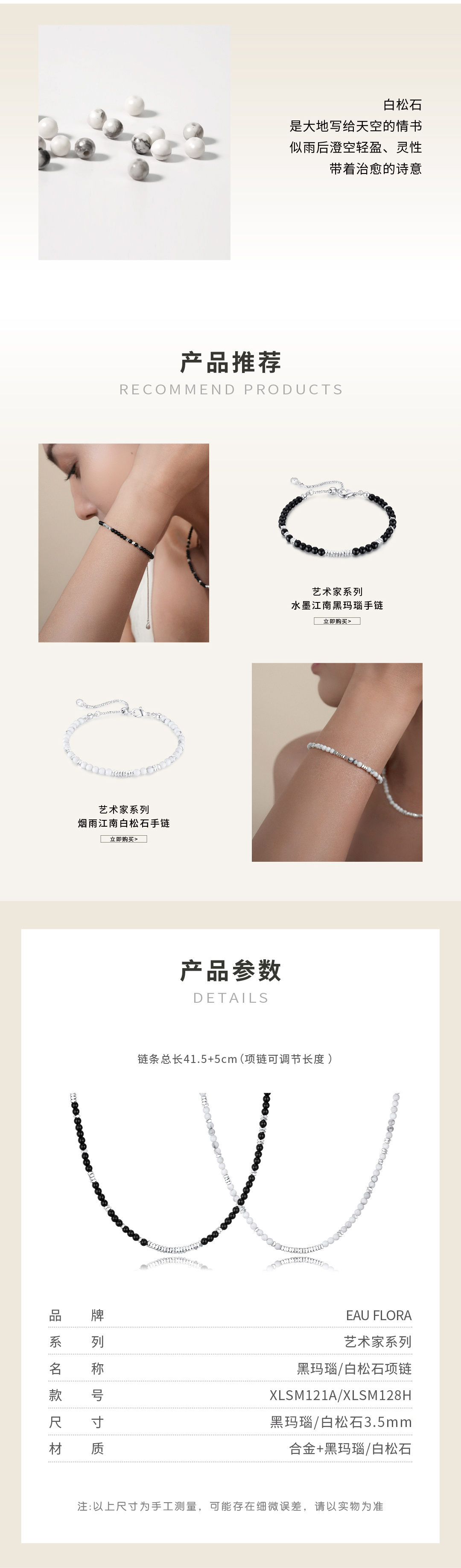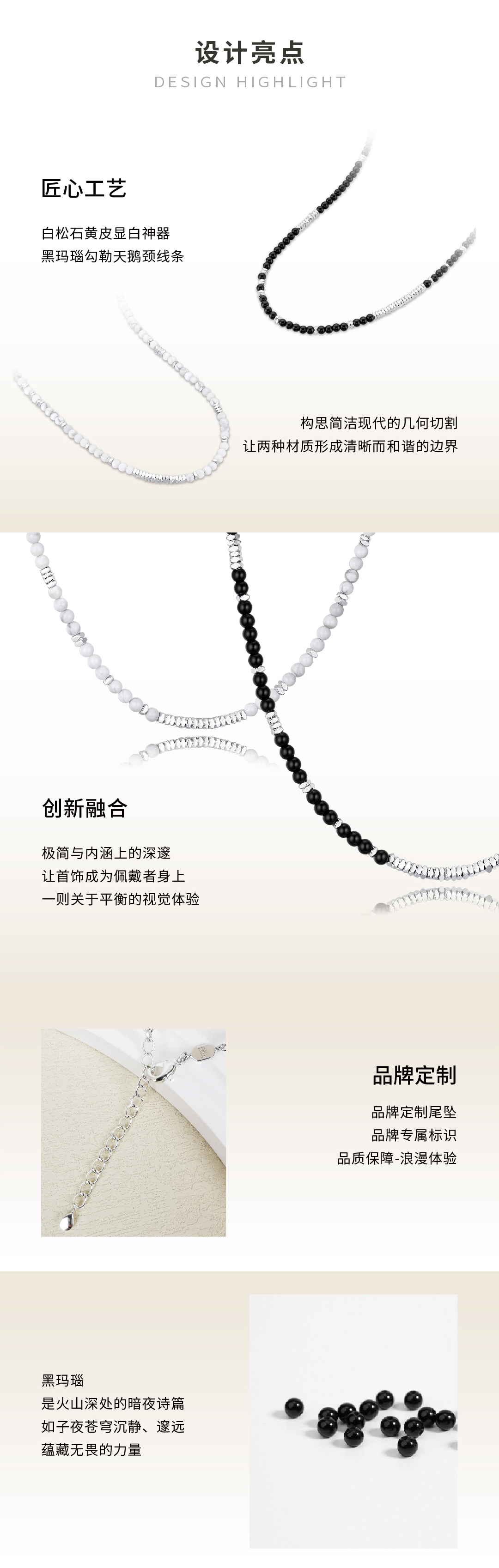 【烟雨江南】黑玛瑙&白松石项链