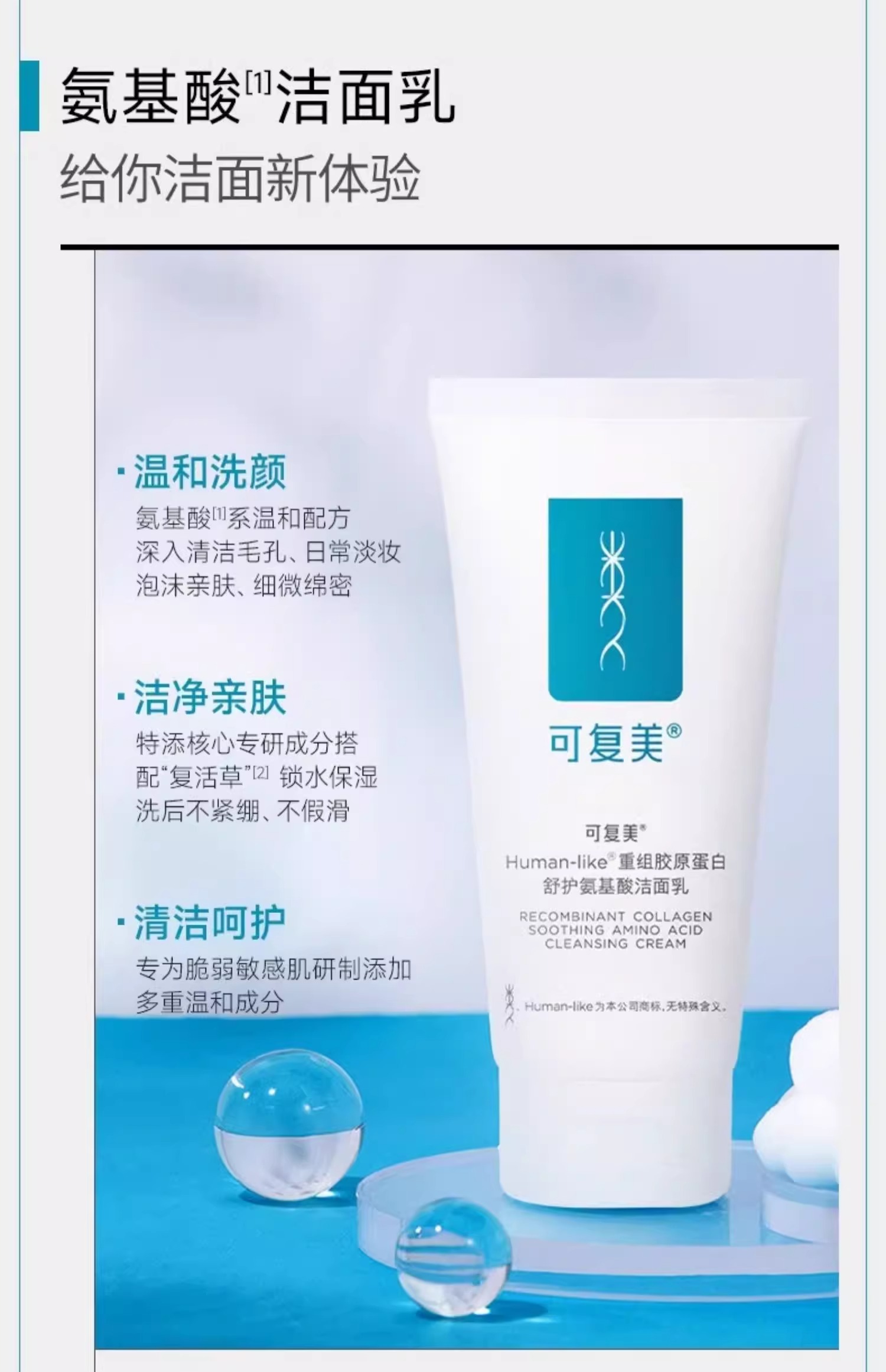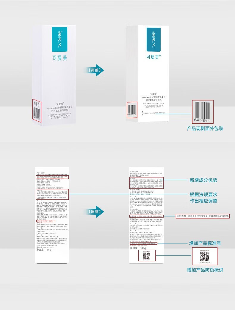 可复美重组胶原蛋白舒护氨基酸洁面乳清洁洗面奶120g