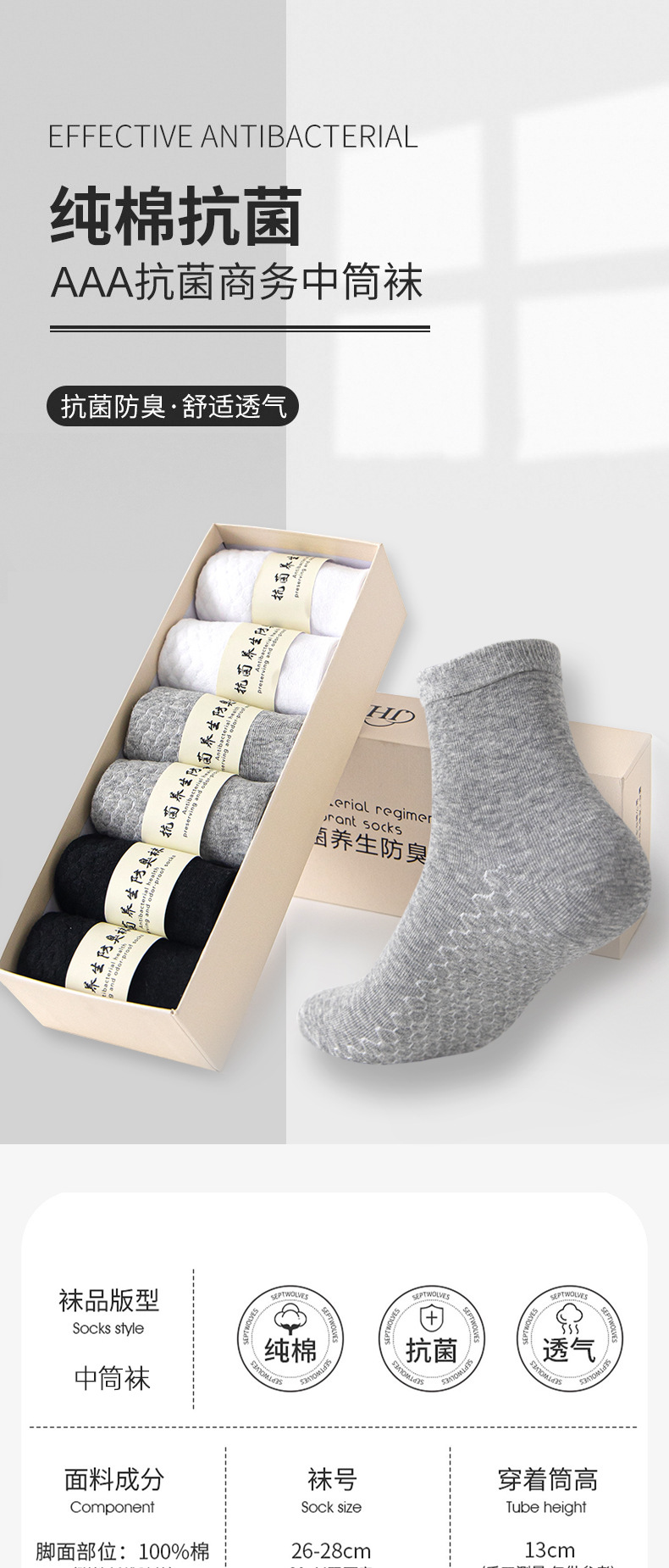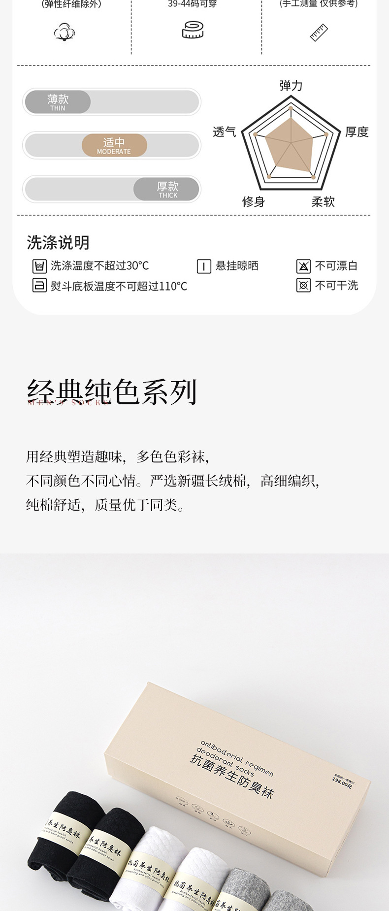 【6双礼盒装!纯棉防臭中筒袜】采用了抗jun技术,防止臭味滋生,同时具备吸汗透气的特性,让你在运动中始终保持干爽舒适。艾草纯棉情侣袜精选新疆长绒精梳棉sh