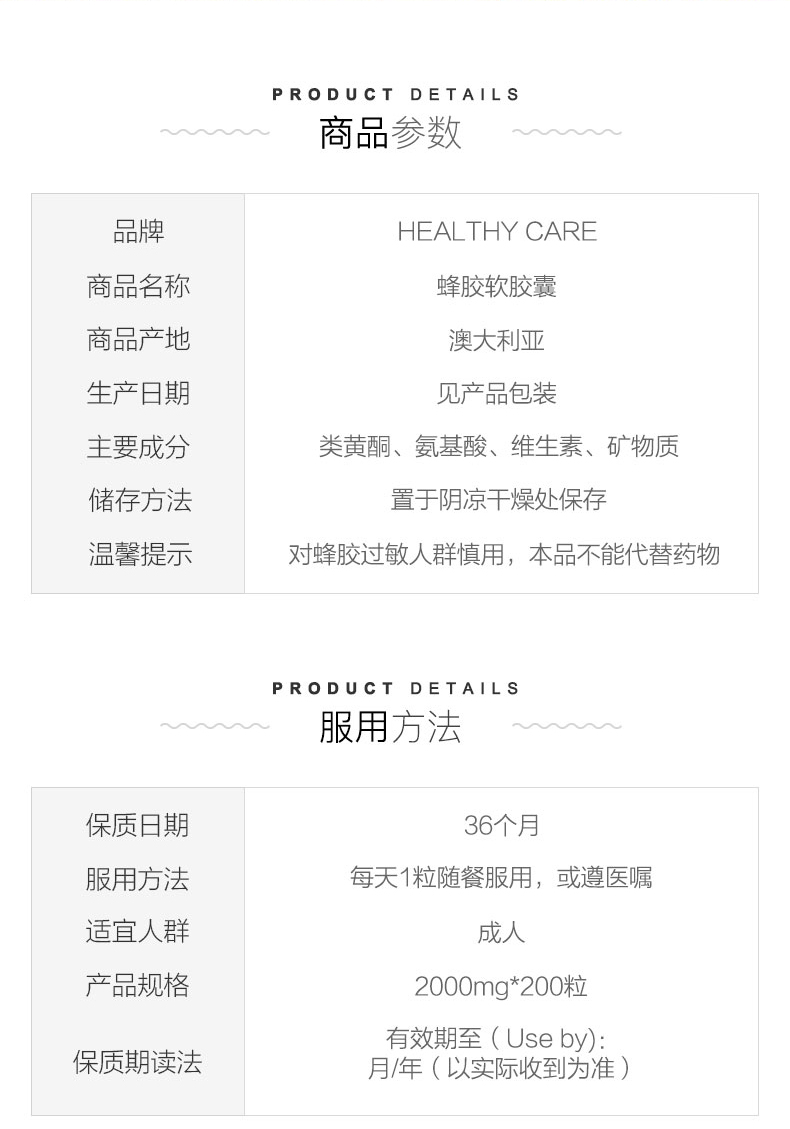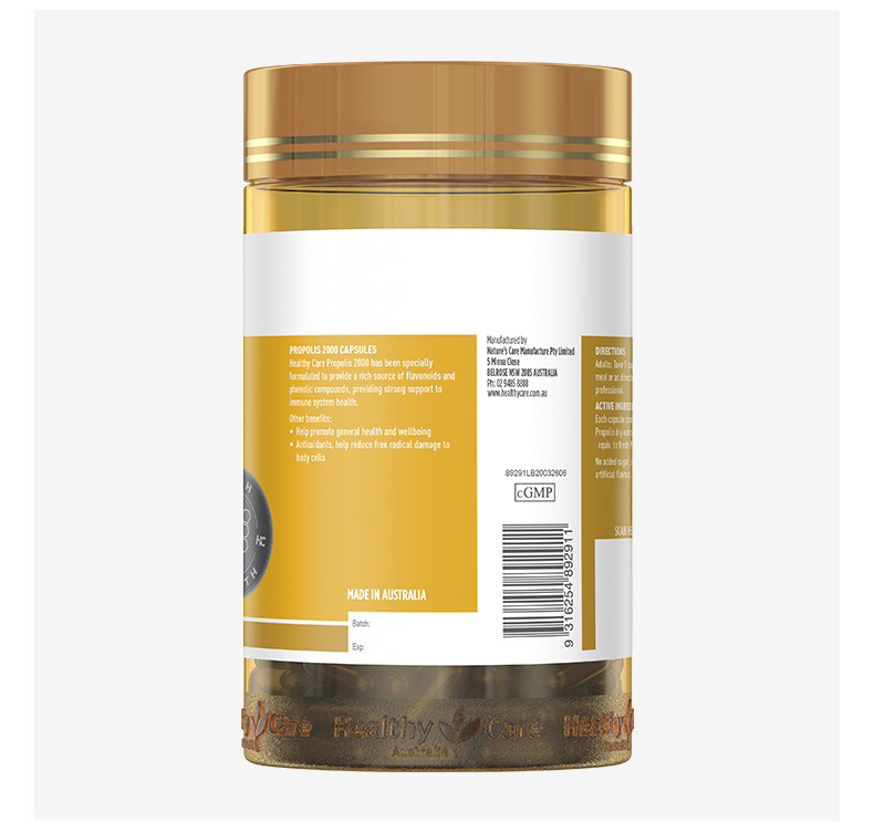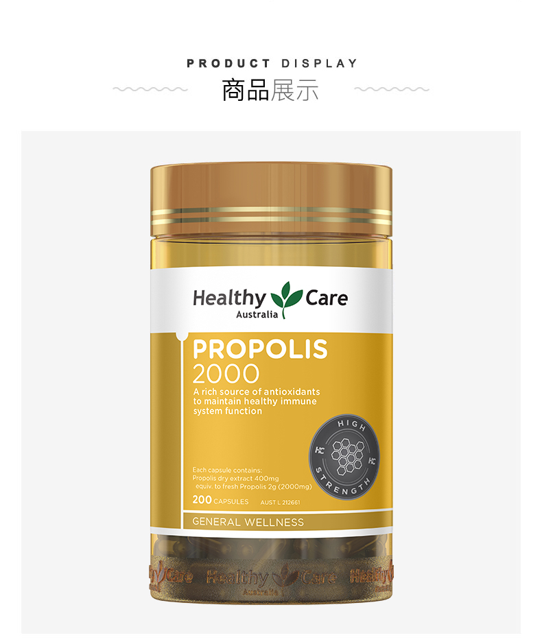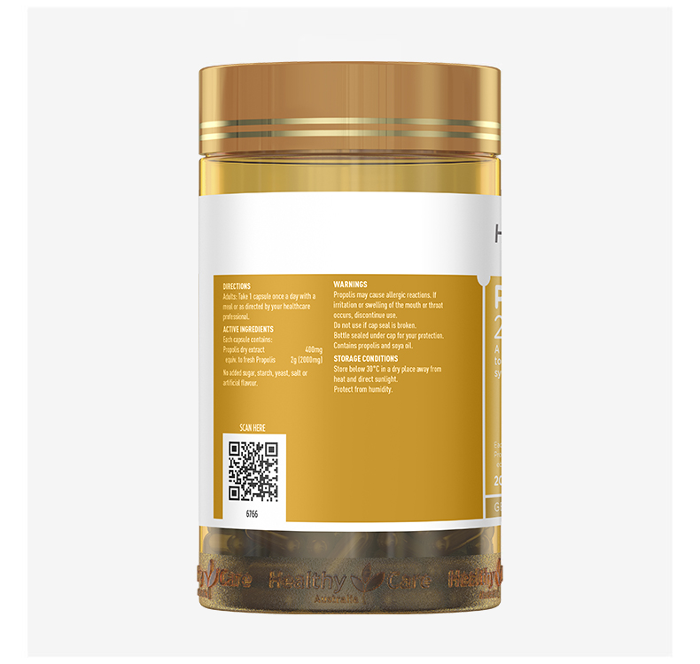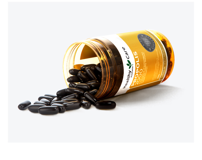 澳洲HealthyCare黑蜂胶胶囊 提高免疫缓三高蜂胶软胶囊200粒 原装进口