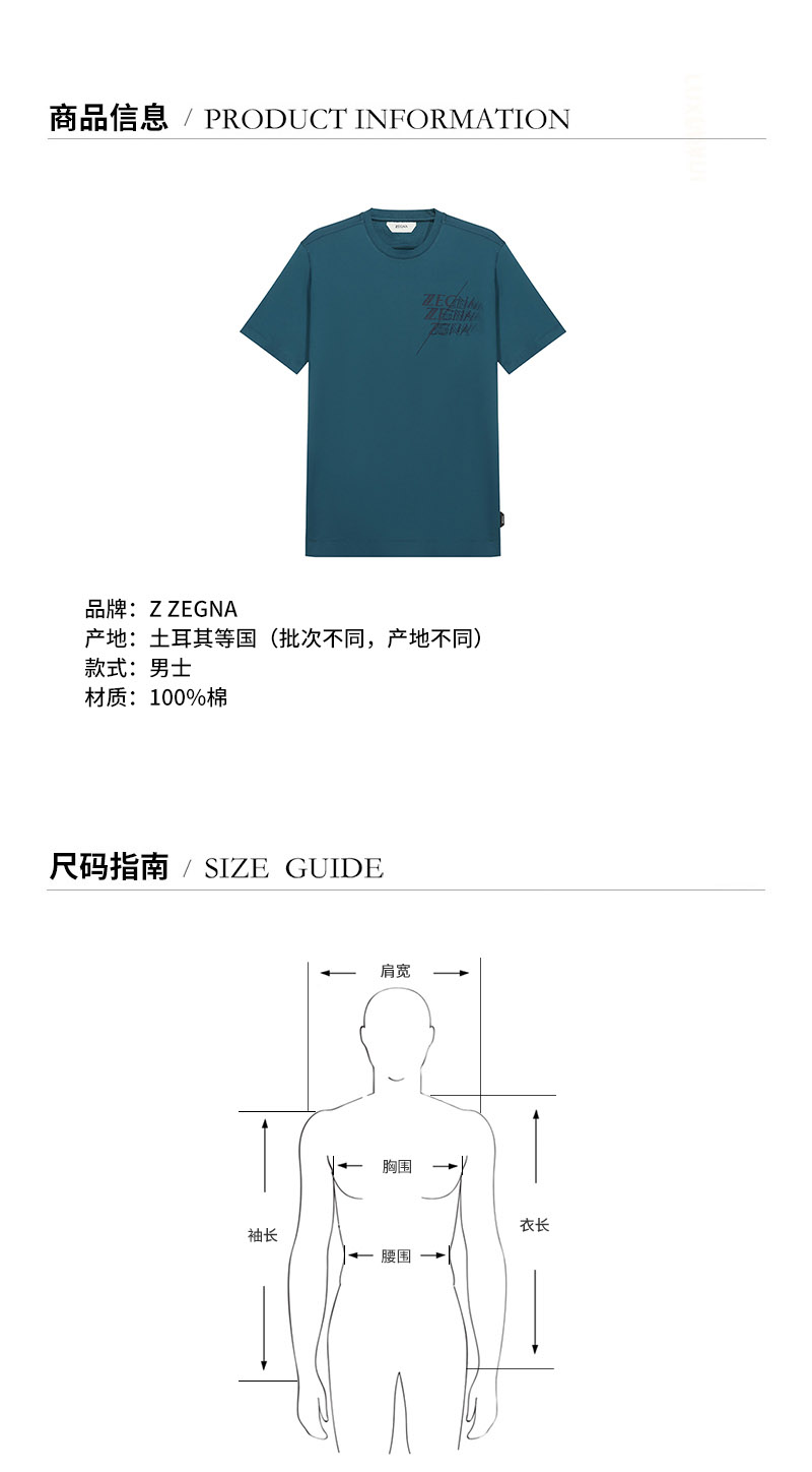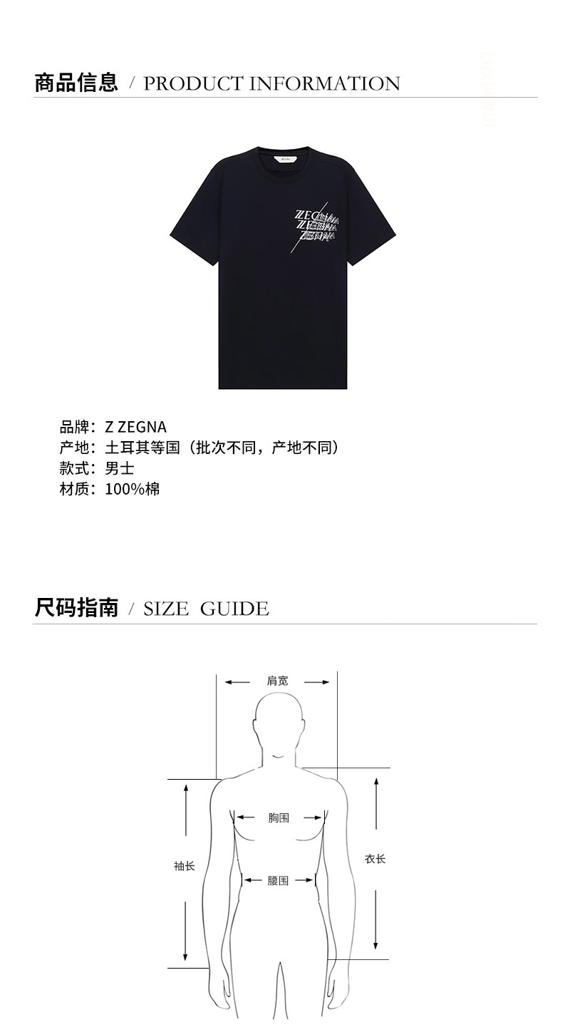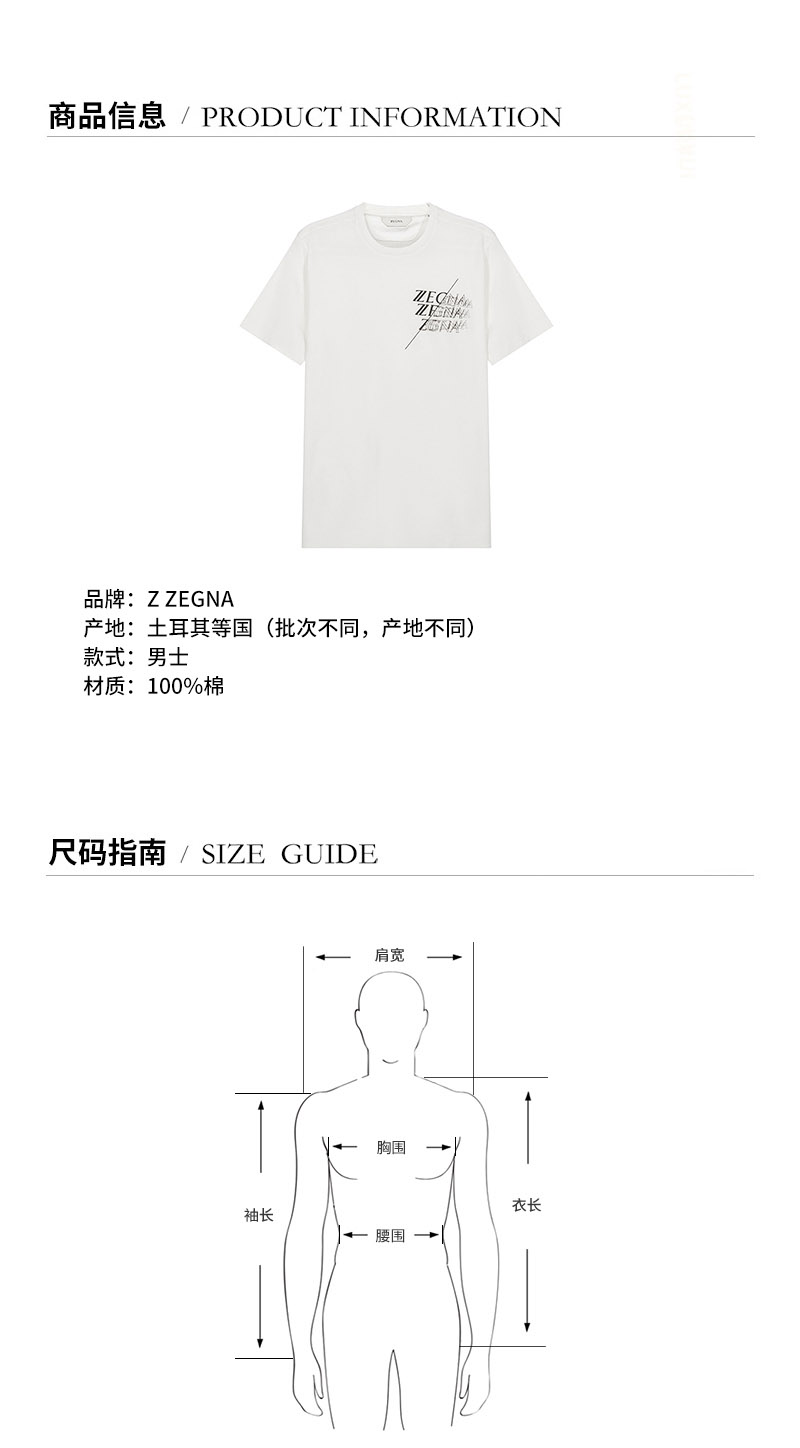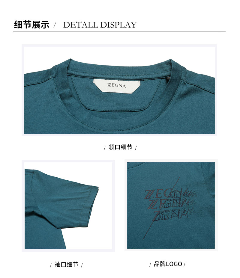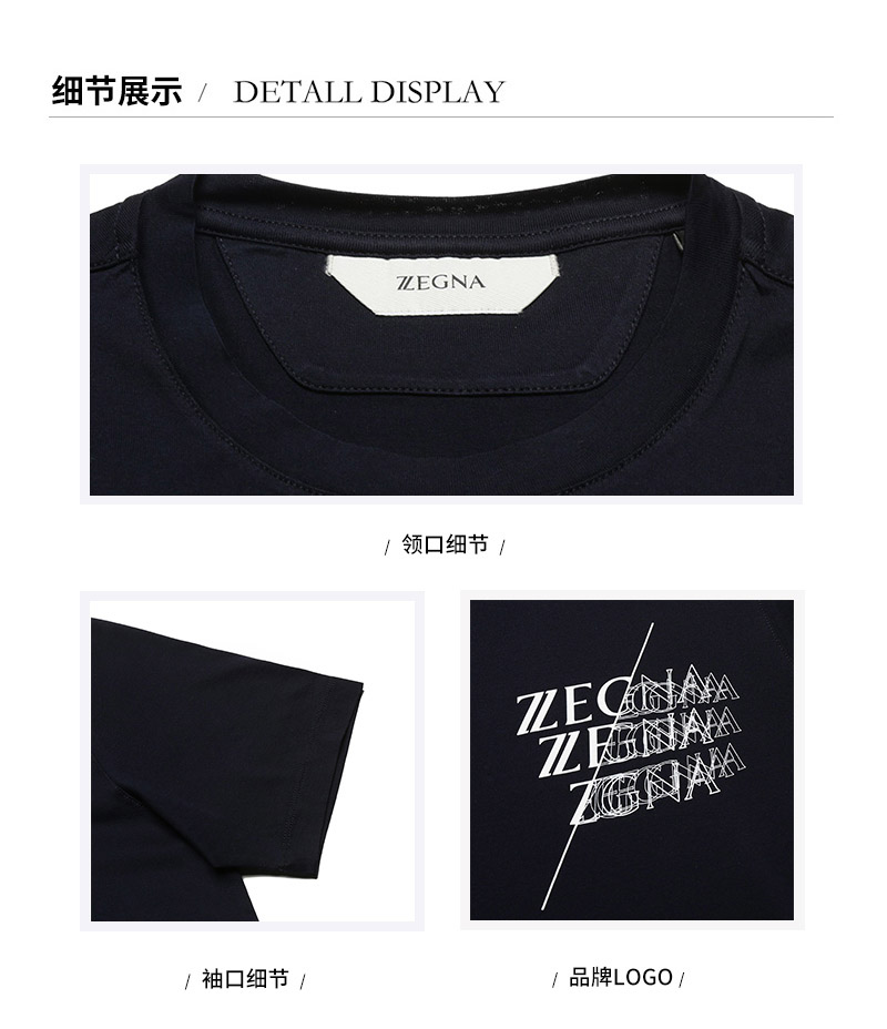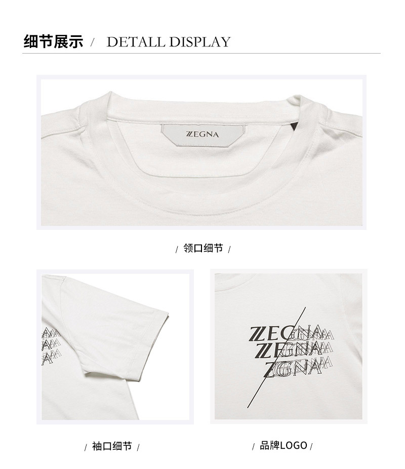 Z ZEGNA/杰尼亚 男士短袖T恤 男士Z ZEGNA标识印花棉质圆领短袖T恤 VY372 ZZ630I