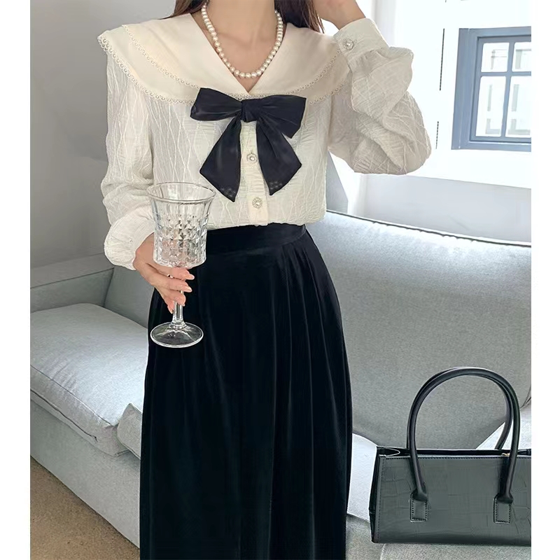 法式小香风,可拆蝴蝶结,特殊褶皱面料增加层次感,双层翻领设计,精美别致纽扣,版型好百搭不挑人,甜美蕾丝花边
