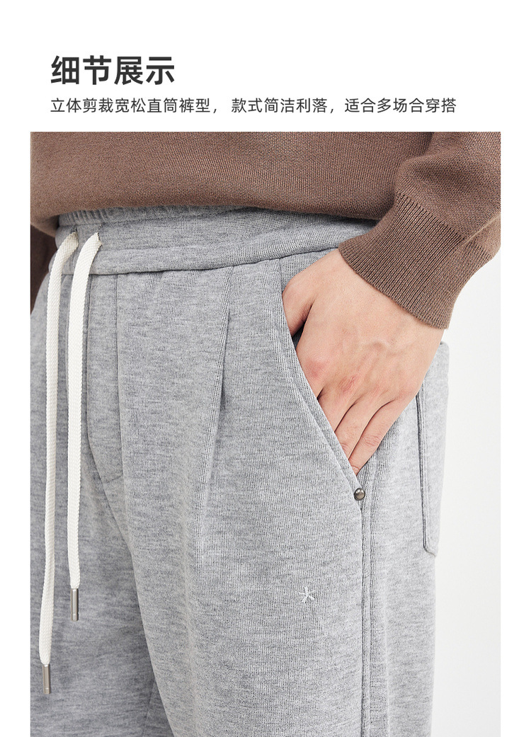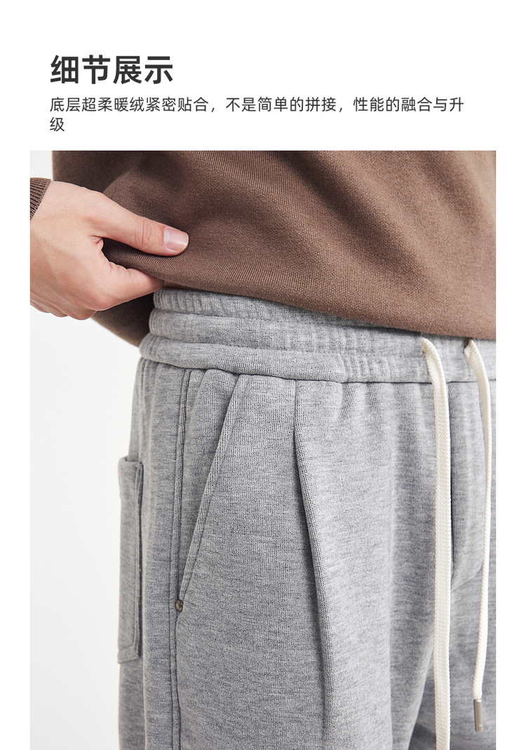 墨麦客男装松紧腰加绒休闲裤男2025冬新款简约直筒男士裤子91485