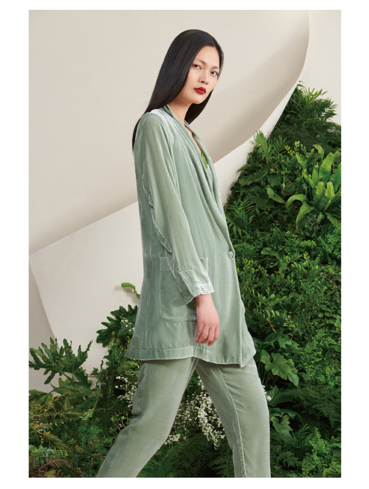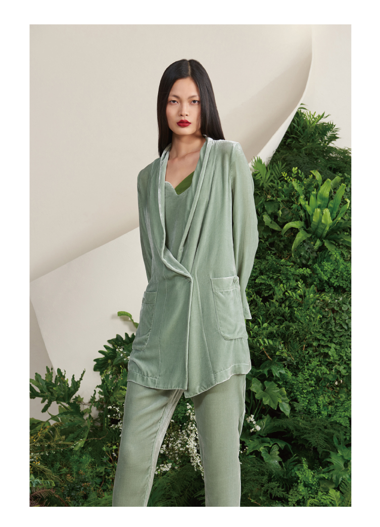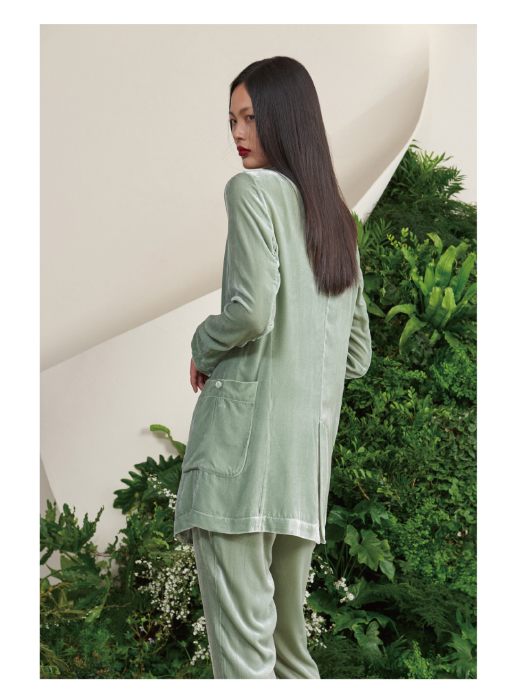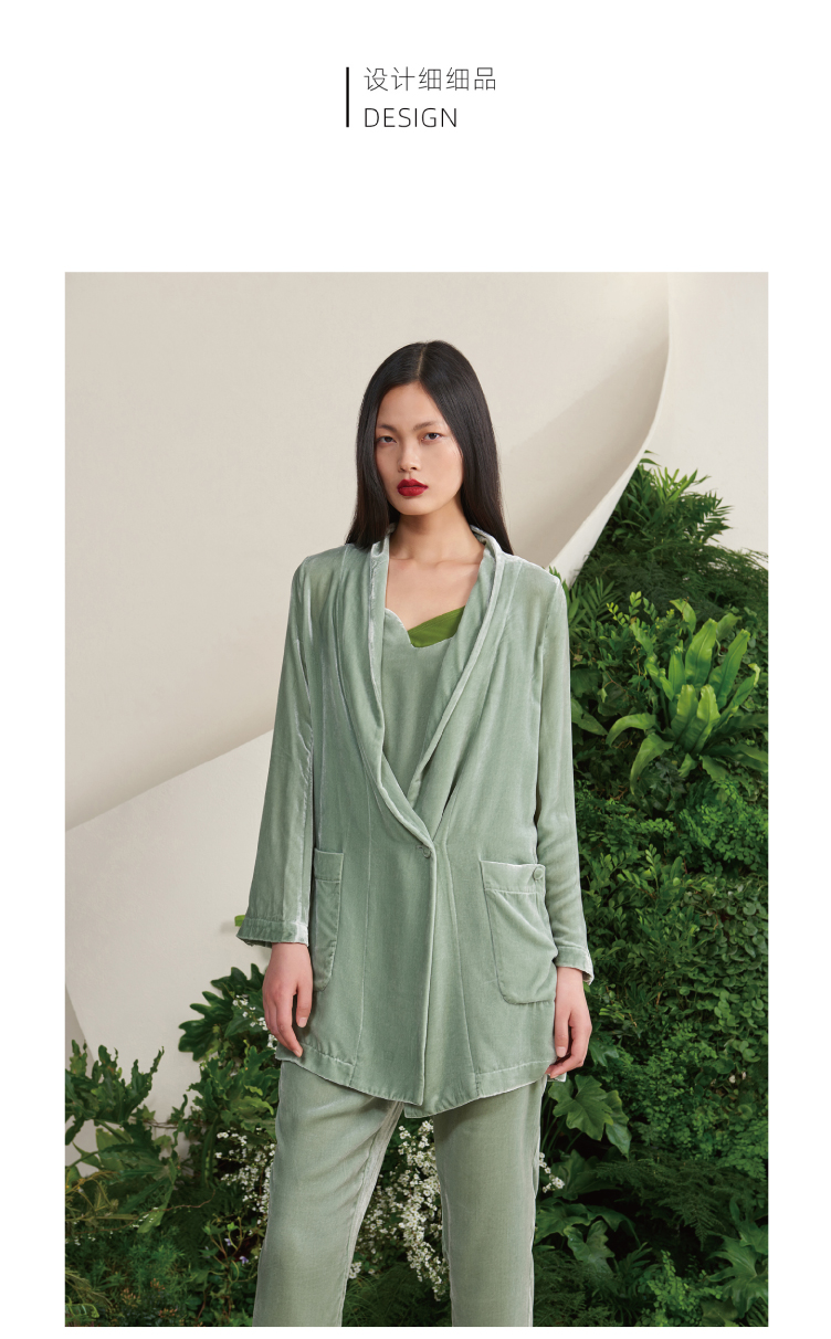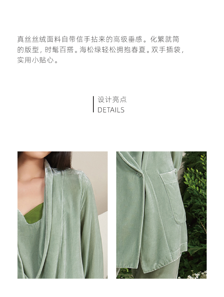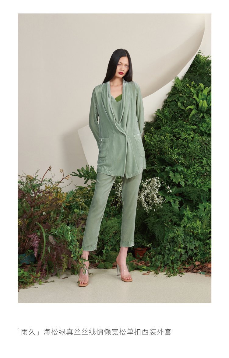 【雨久】海松绿真丝丝绒慵懒宽松单扣西装外套/00187