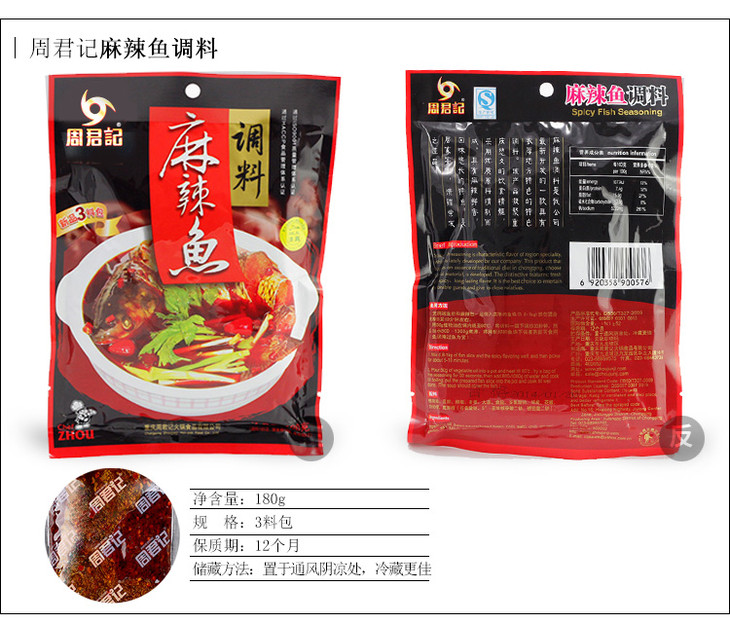 重庆特产周君记麻辣鱼水煮鱼佐料180g 麻辣鱼调料 重庆火锅底料