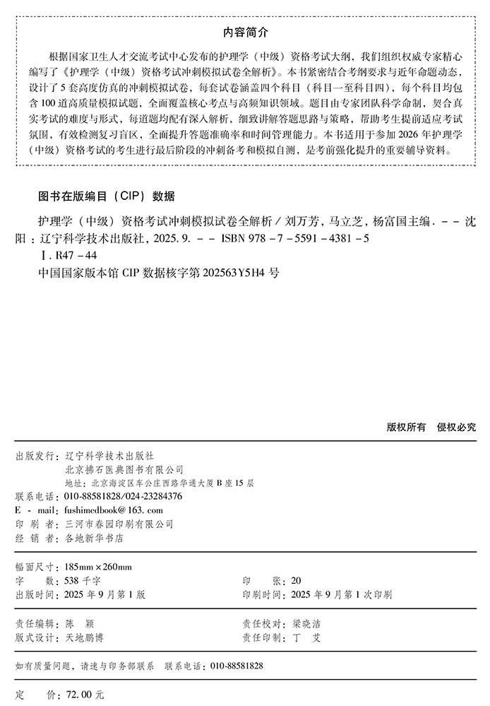 2026护理学(中级)资格考试冲刺模拟试卷全解析 全国初中级卫生专业技术资格考试辅导丛书 刘万芳 马立芝 辽宁科学技术出版社