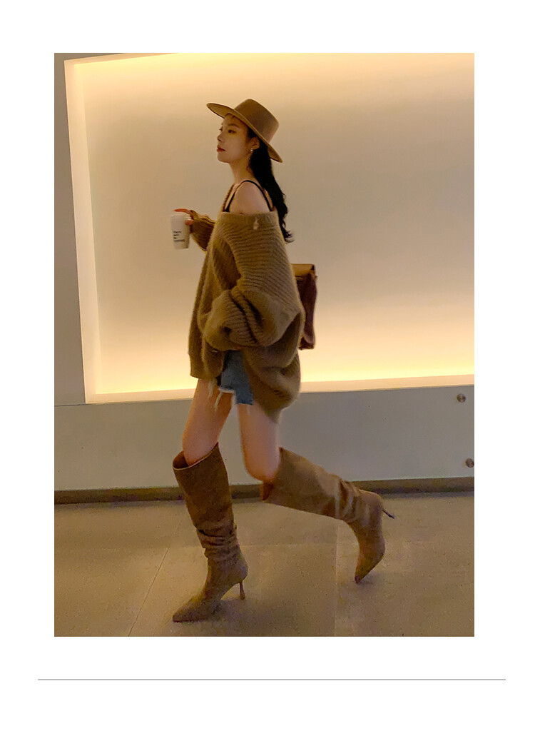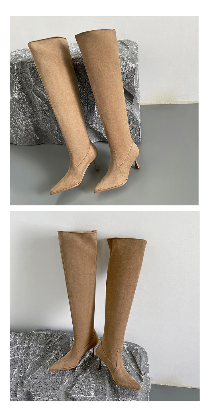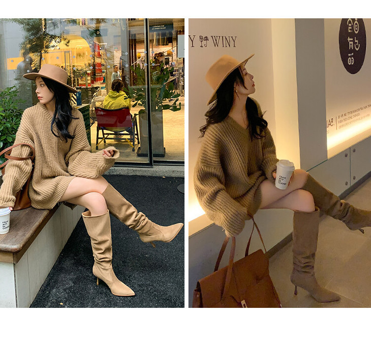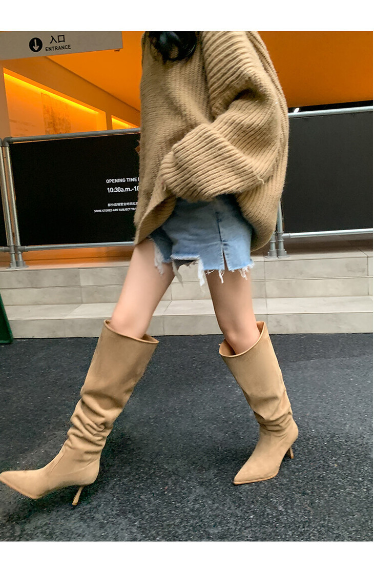 【大筒围堆堆靴尖头长靴】女大码细跟高筒靴高跟粗腿过膝长靴