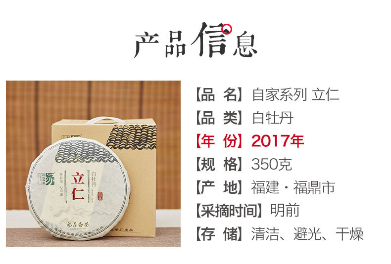 自家系列丨2017年 白牡丹 立仁 350g/饼