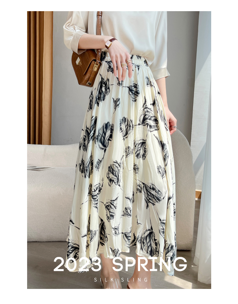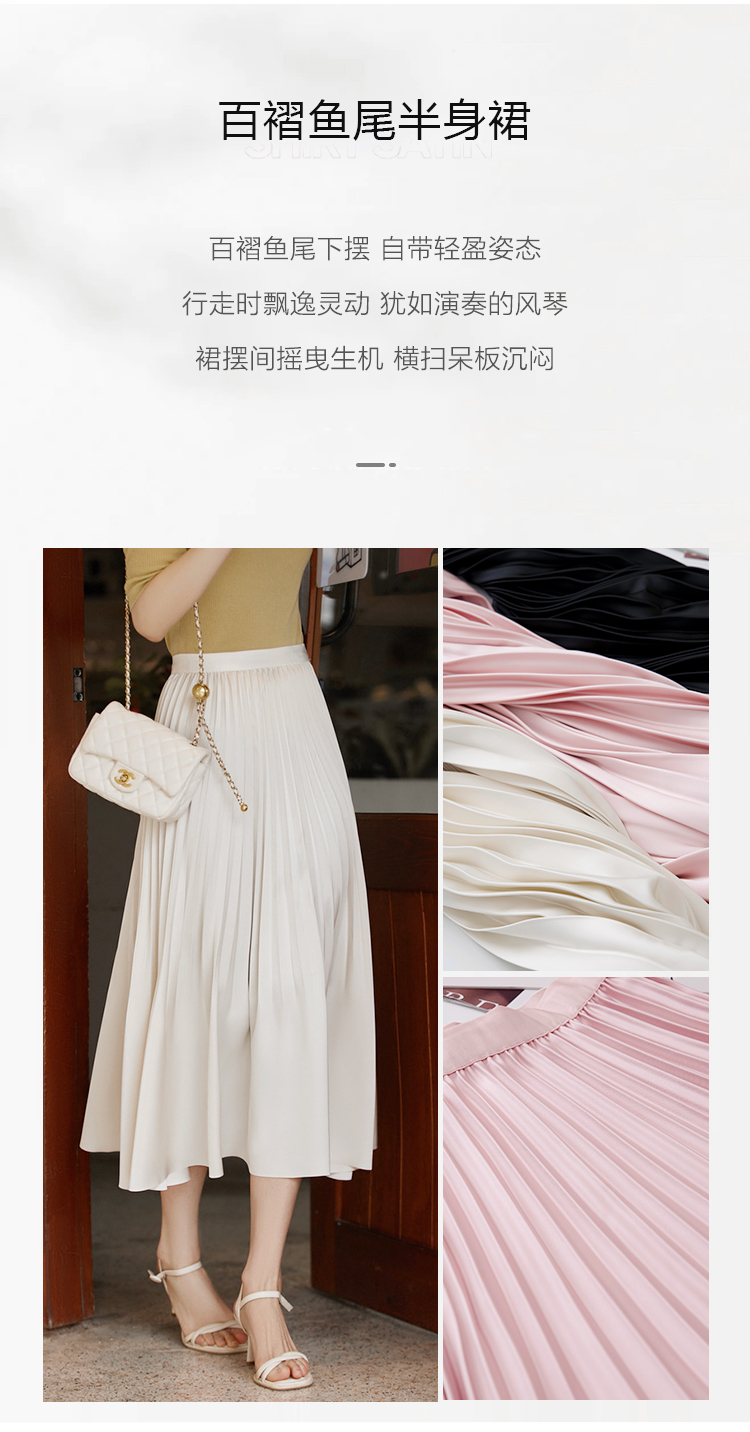AVANN鱼尾百褶裙/缎面A字裙/印花半裙/缎面提花阔腿裤