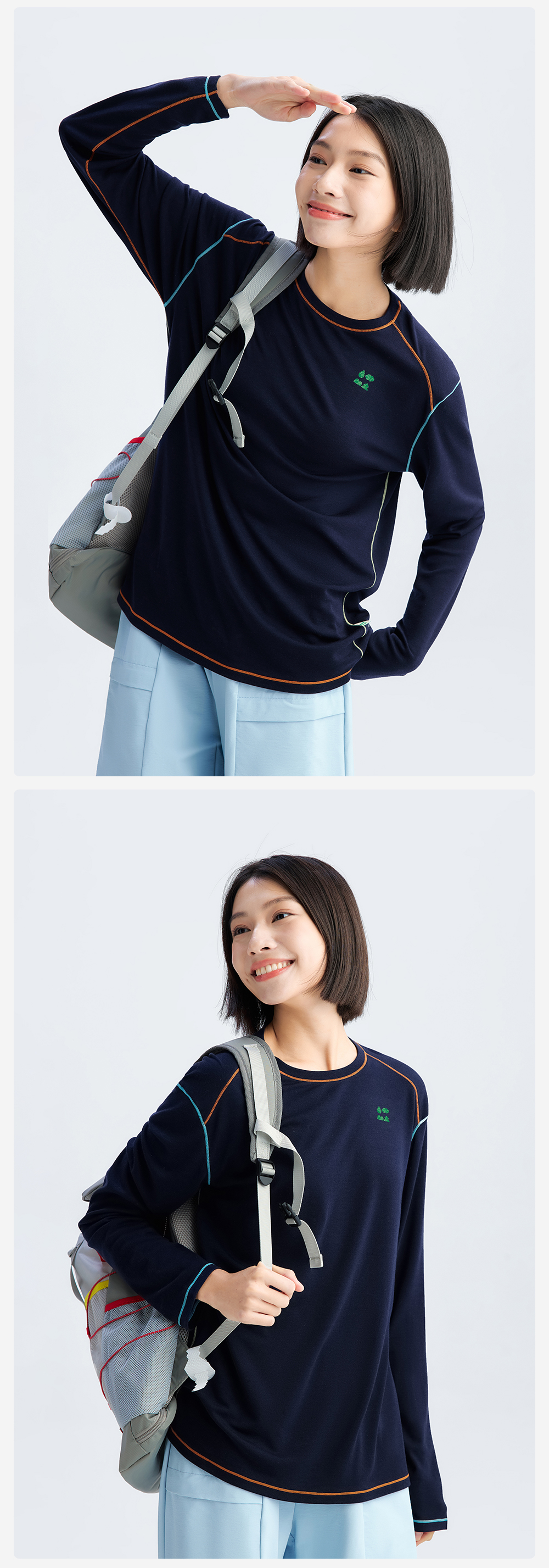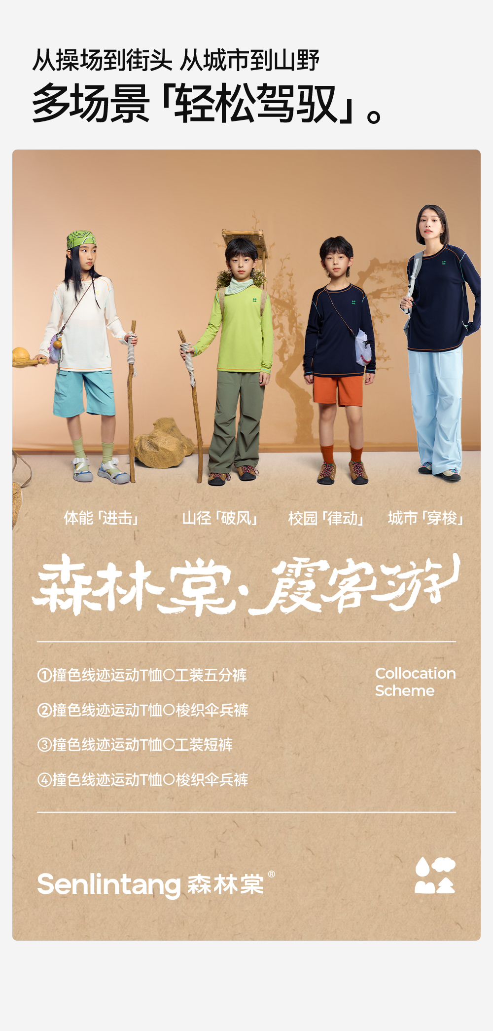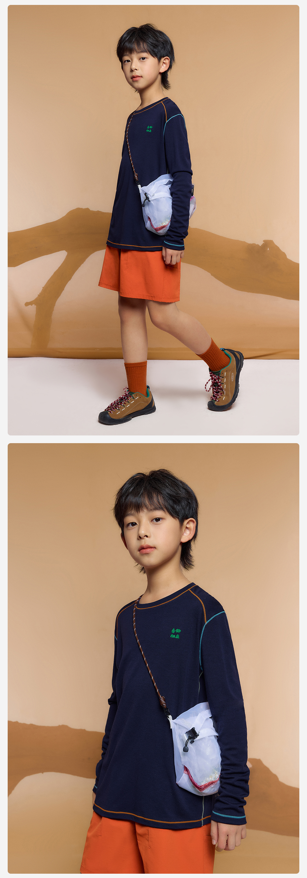 【撞色线迹运动T恤】森林棠26春款儿童亲肤舒适正肩圆领长袖20261342【HZ】