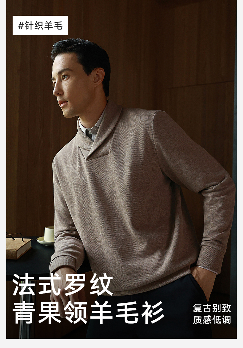 针织青果领法式罗纹羊毛衫-FS09-01