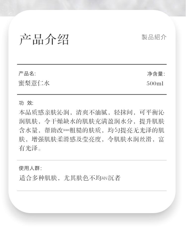 【中欧班列精选】日本蜜梨品牌薏仁爽肤水500ml/瓶 授权直供