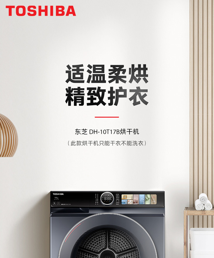 东芝(252124)T系10公斤干衣机热泵适温烘 UV紫外线除菌 超薄全嵌 UMS微蒸汽熨衣 空气洗精致护衣DH-10T17B