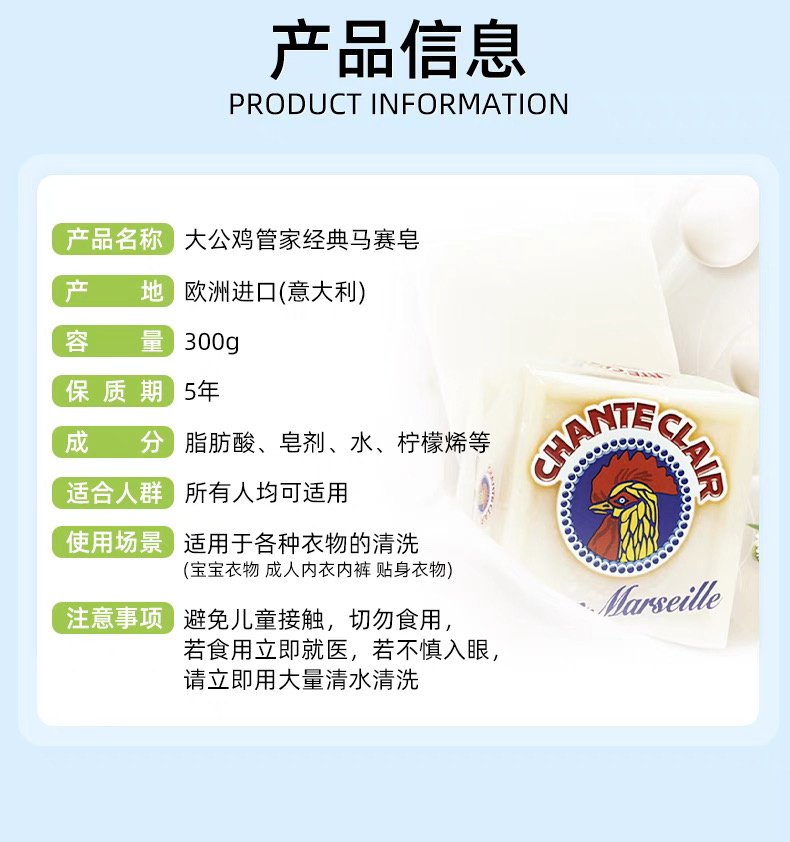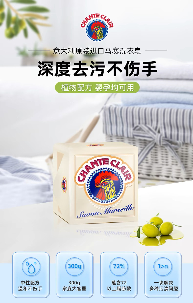 大公鸡马赛洗衣皂300g
