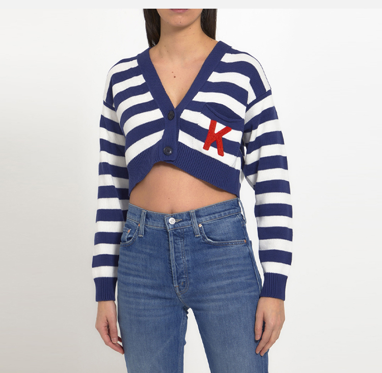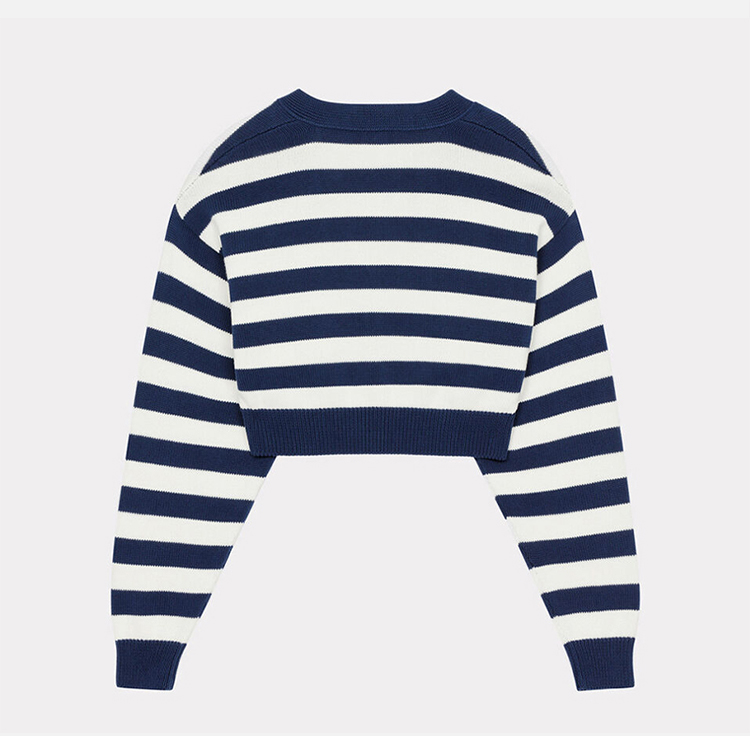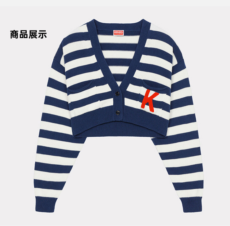 KENZO 高田贤三 女士棉质“航海条纹”针织开衫 蓝白条纹 FD52 CA356 3CG 77