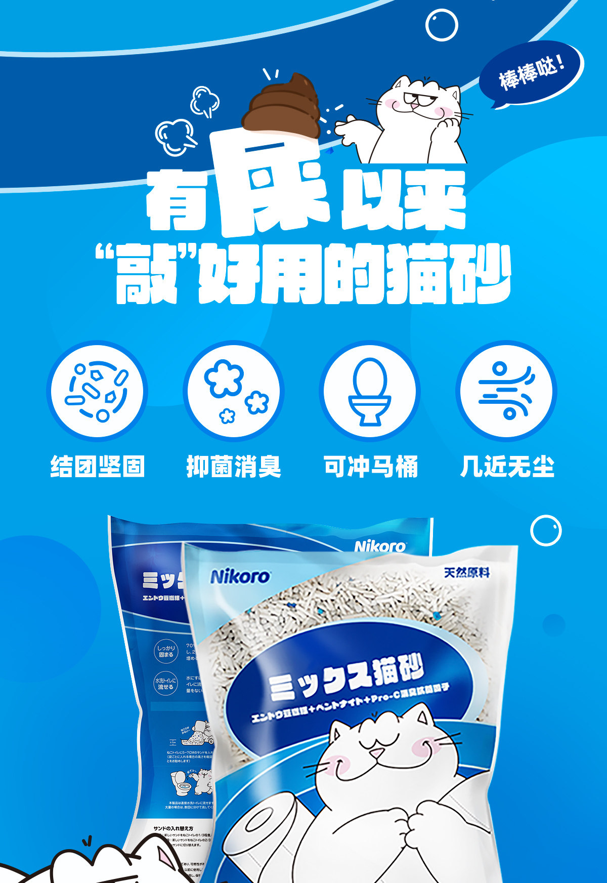 妮可露猫砂混合猫砂膨润土除臭抑菌几近无尘可冲厕所10kg/15kg
