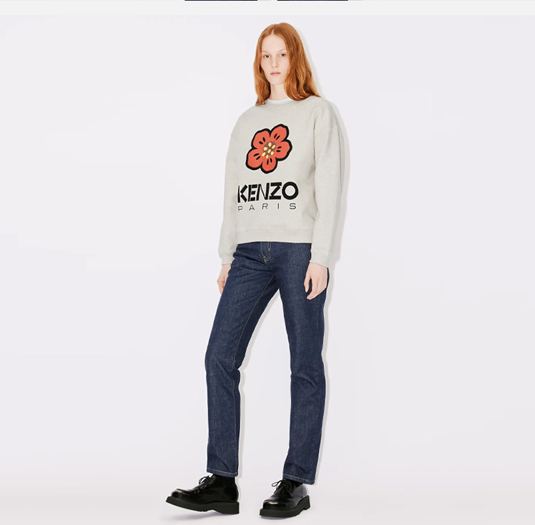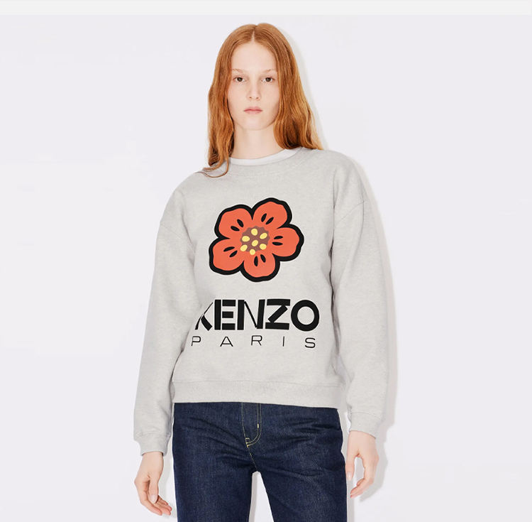 KENZO 高田贤三 女士“BOKE FLOWER”徽章棉质长袖卫衣 浅灰色 FD52 SW036 4ME 93