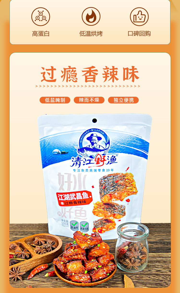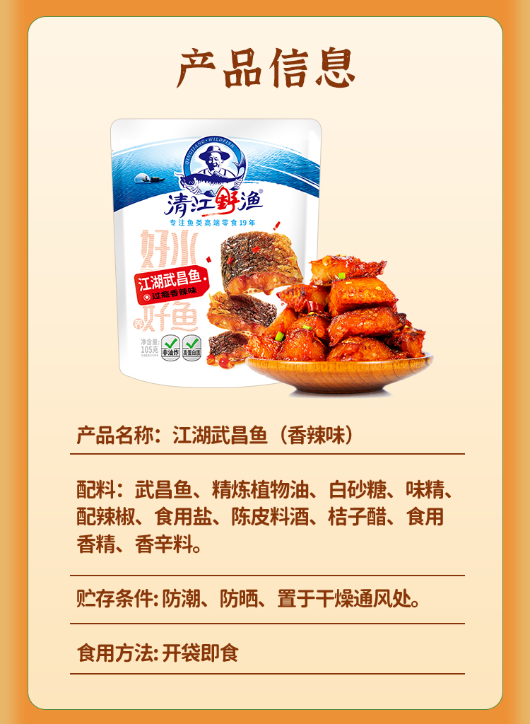 宜昌清江野渔 江湖系列 江湖武昌鱼香辣味105g*3袋