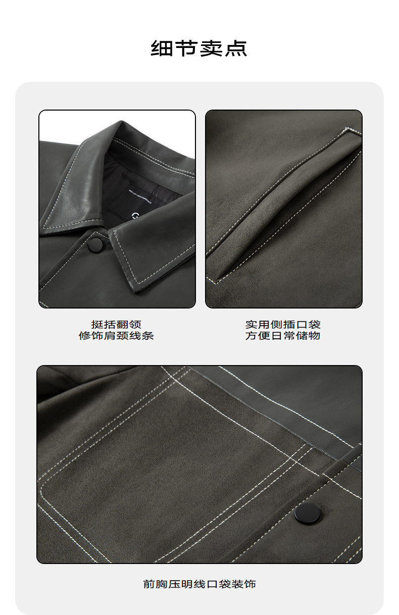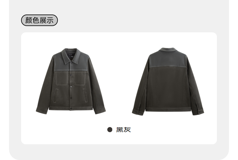 GXG男装 明线设计pu皮夹克男撞色拼接外套宽松潮流夹克 春秋热卖夹克