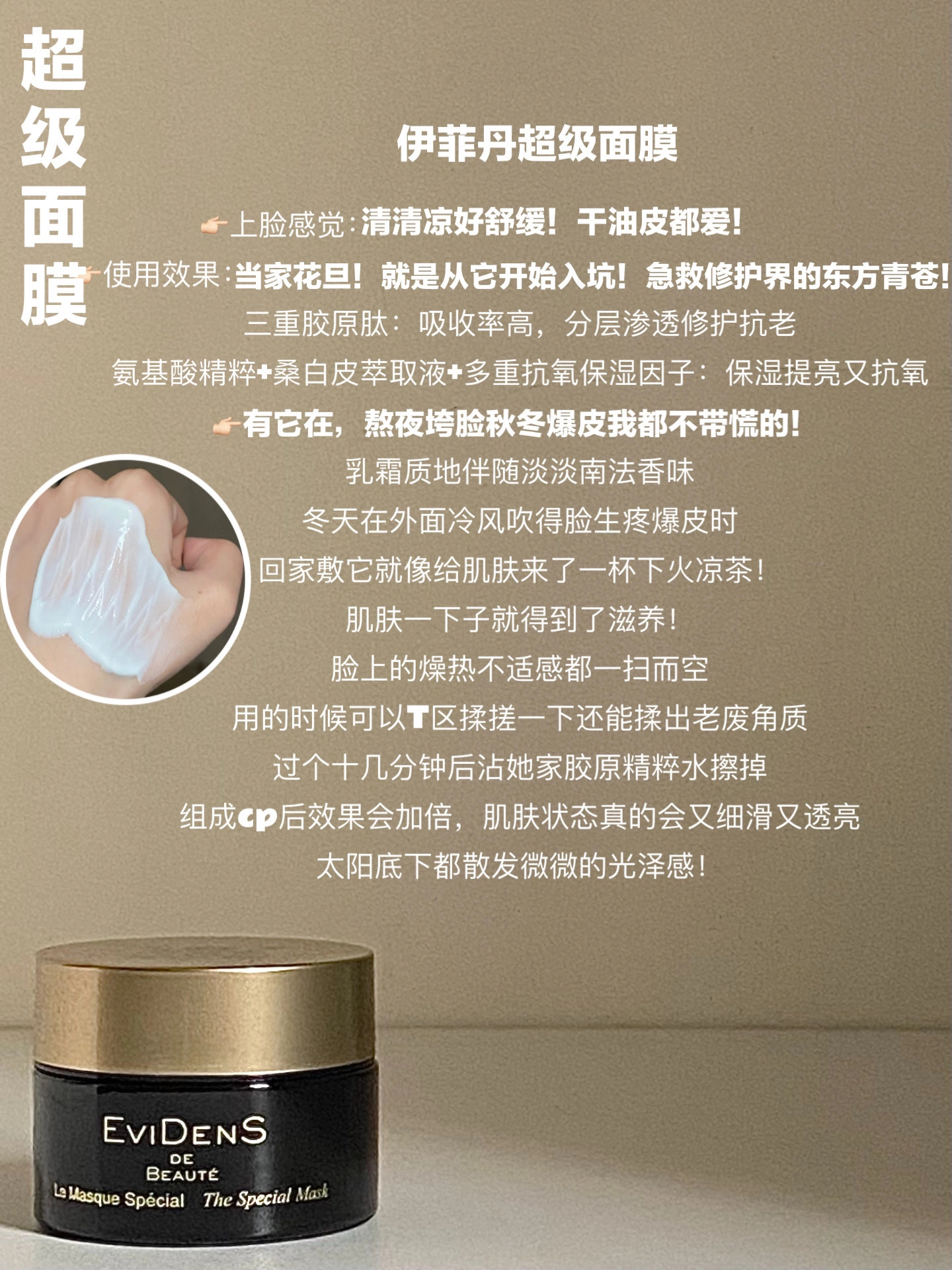 法国EVIDENS伊菲丹超级面膜/精粹水/超级面霜 全能三重胶原 涂抹 收缩毛孔保湿清洁修护
